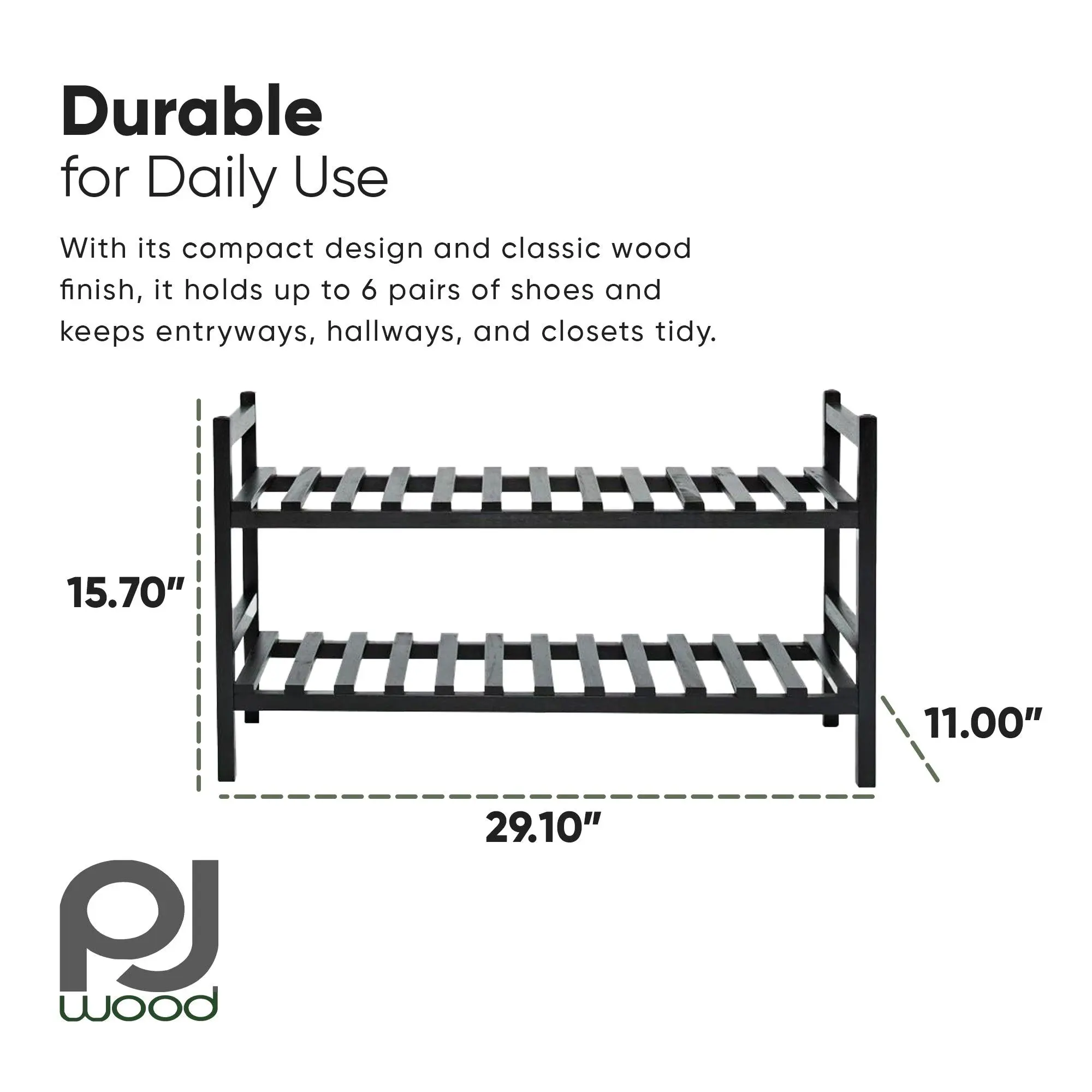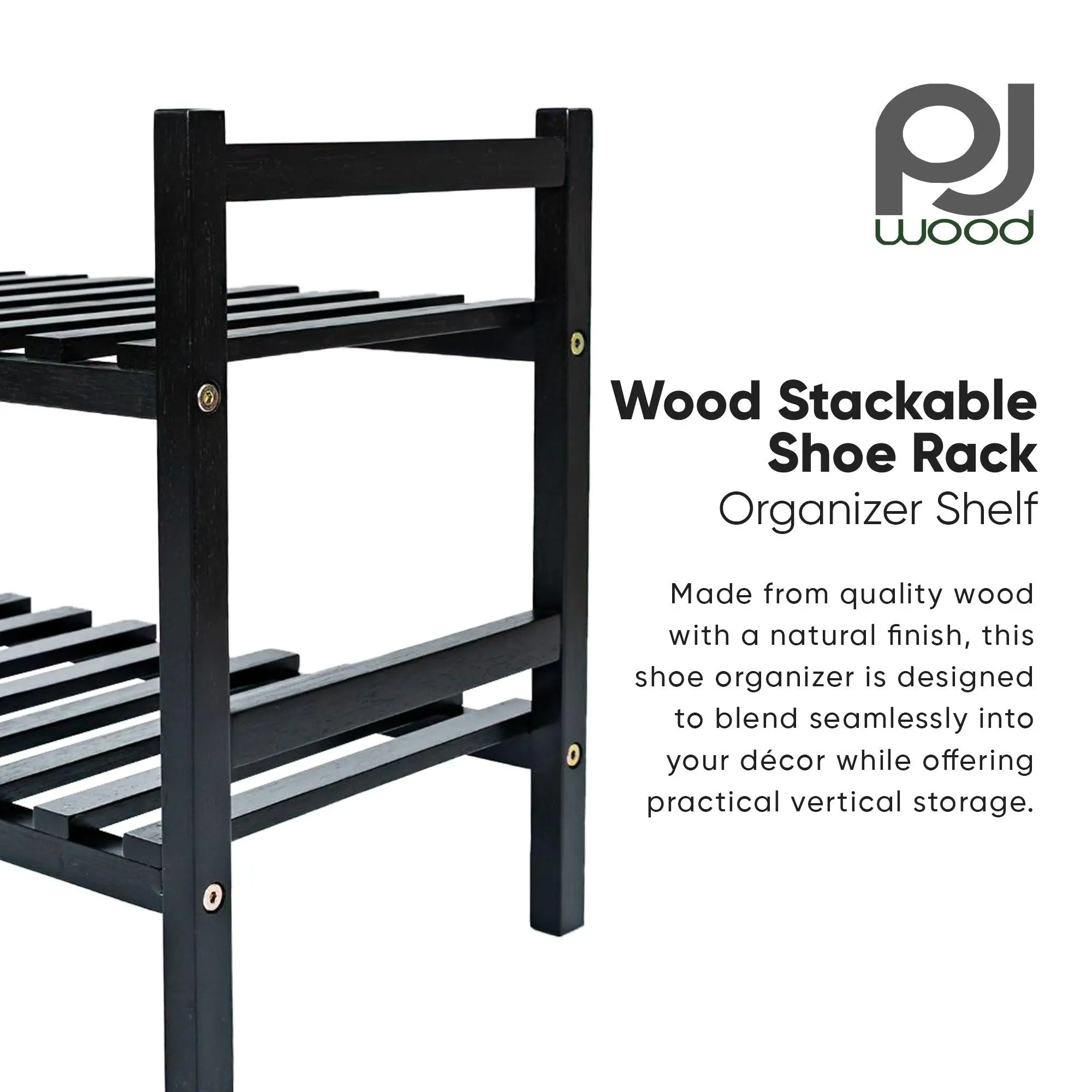 The PJ Wood Stackable Shoe Rack is your go-to solution for organizing shoes in any space without sacrificing style. With a compact footprint and classic wood finish, it holds up to 6 pairs of shoes and brings order to cluttered entryways, hallways, and closets. Whether you live in a small apartment or a family home, this shoe shelf makes storage both efficient and attractive.Made from quality wood with a natural finish, this shoe organizer is designed to blend seamlessly into your décor while offering practical vertical storage. The stackable design allows you to customize your space—add another rack on top to double your capacity without taking up more floor space. It’s ideal for anyone looking to tidy up front doors, narrow corners, or closet floors.Not just for shoes, this rack can also be used to hold small storage bins, offering extra shelving in bedrooms, bathrooms, and even craft rooms. The open tiered design keeps items visible and easy to access, making your daily routine more efficient.Assembly is quick and cleaning is simple—just use furniture polish and a soft cloth to keep it looking its best. Avoid harsh chemicals or abrasive cleaners to maintain the wood’s natural finish. Organize your living space the smart and stylish way with this Stackable Shoe Rack from PJ Wood that adapts to your needs.