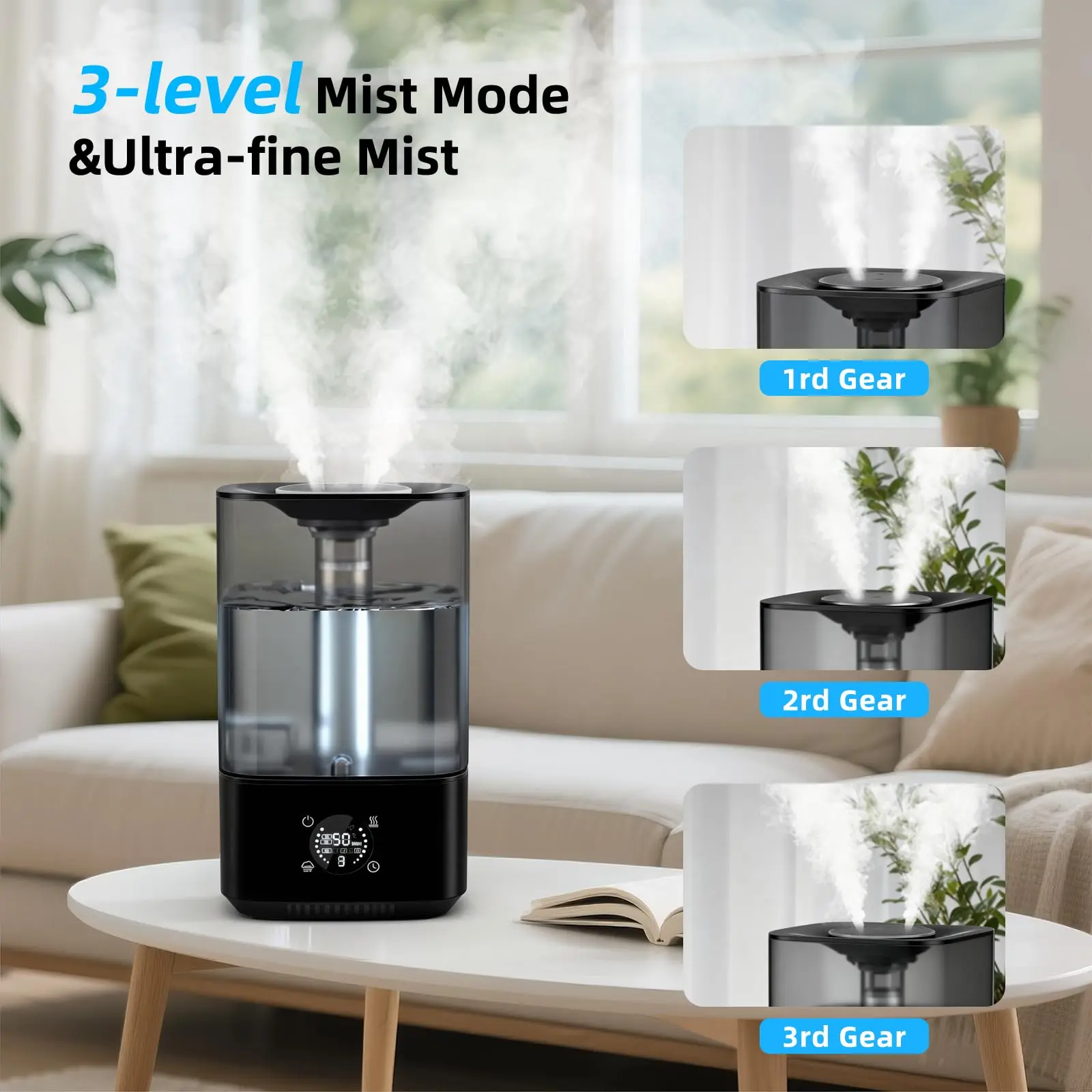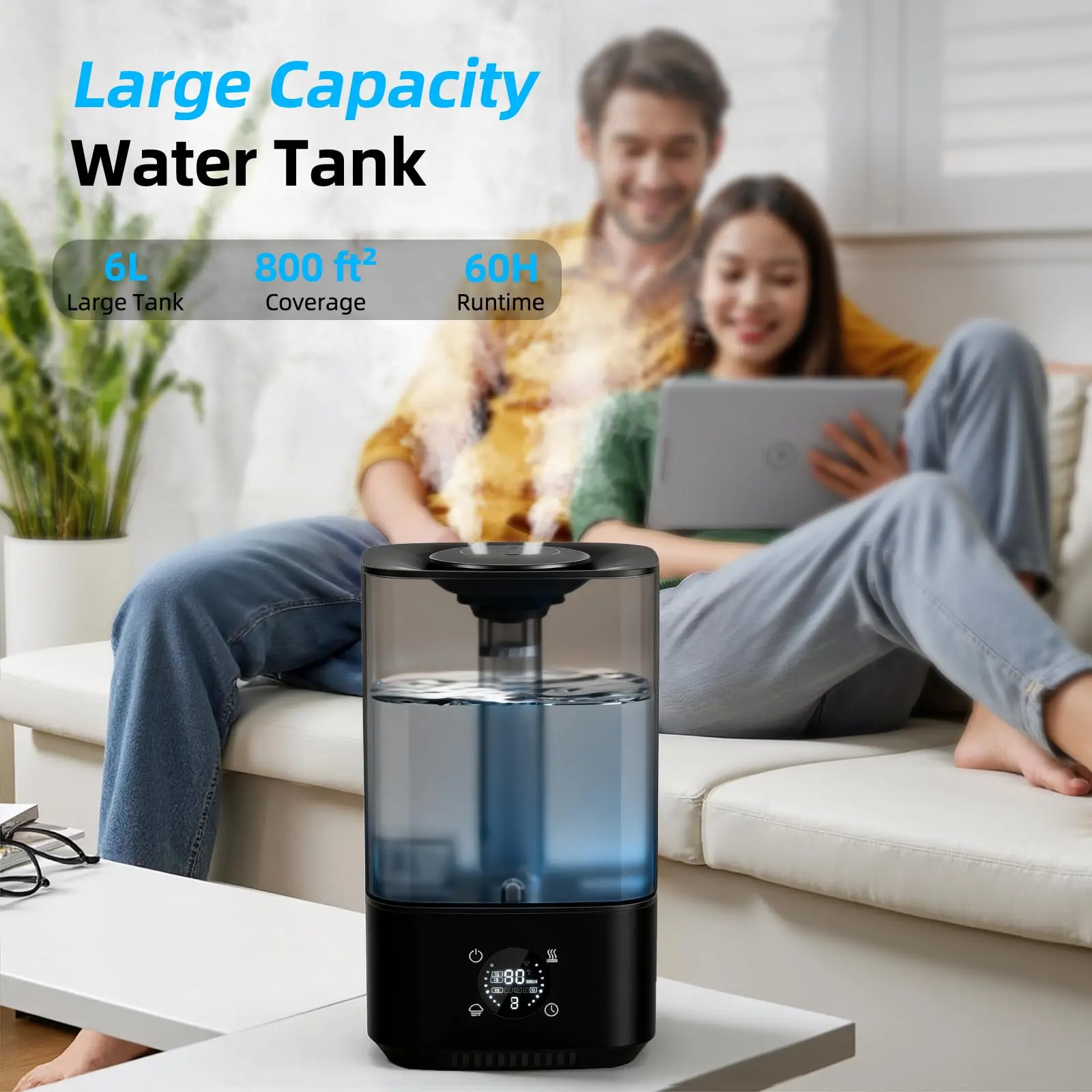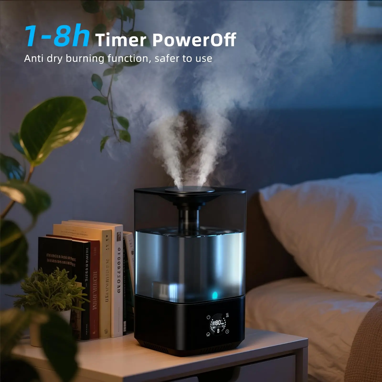 Runs up to 60 hours on the lowest mist setting, reducing the need for frequent refills. The built-in auto shut-off feature activates when the water level is low for added peace of mind.