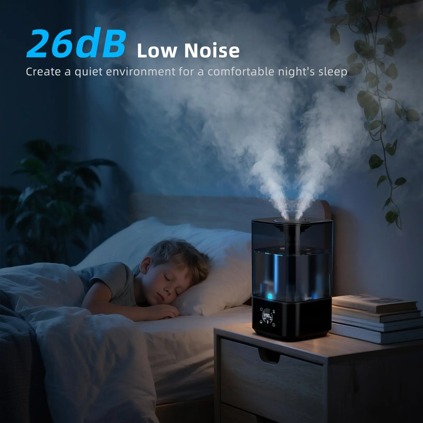 Designed for long-lasting moisture output, this 6L humidifier helps maintain a more comfortable indoor environment during dry seasons. Operating at a quiet 26dB, it’s suitable for bedrooms, offices, and living spaces. The soft night light can be turned off for uninterrupted rest.