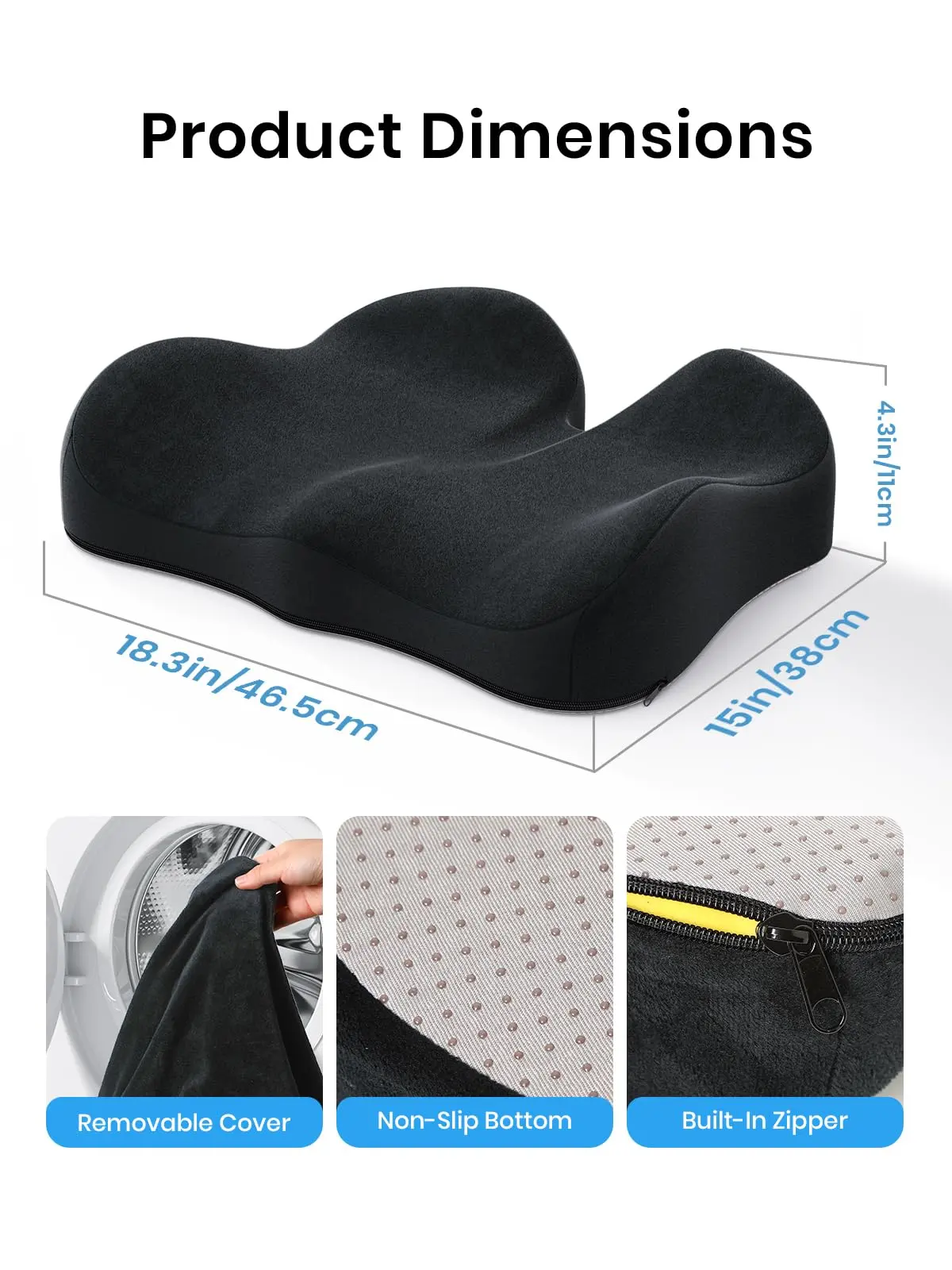 Made with high-density memory foam, this seat cushion gently contours to your body shape, helping distribute weight evenly and reduce pressure from long hours of sitting. Enjoy a more comfortable and supportive seating experience throughout the day.