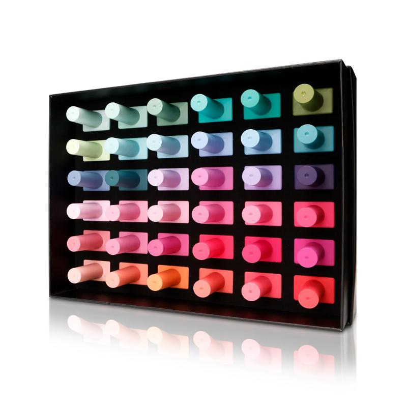 Available for purchase as individual shades or as a full 36 shade collection. A pre-painted swatch tile is included with purchase of a full collection!