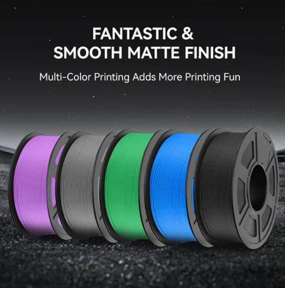 【High Compatiblity & Vacuum Pack PLA Matte Filament】Compatible with 99% FDM 3D printers (with heated beds) and 3D pen.Vacuum packed neatly arranged SUNLU PLA Matte filament, provide better printing result.Environmental protection,1KG PLA Matte filament is made from starch raw materials derived from renewable plant resources.
