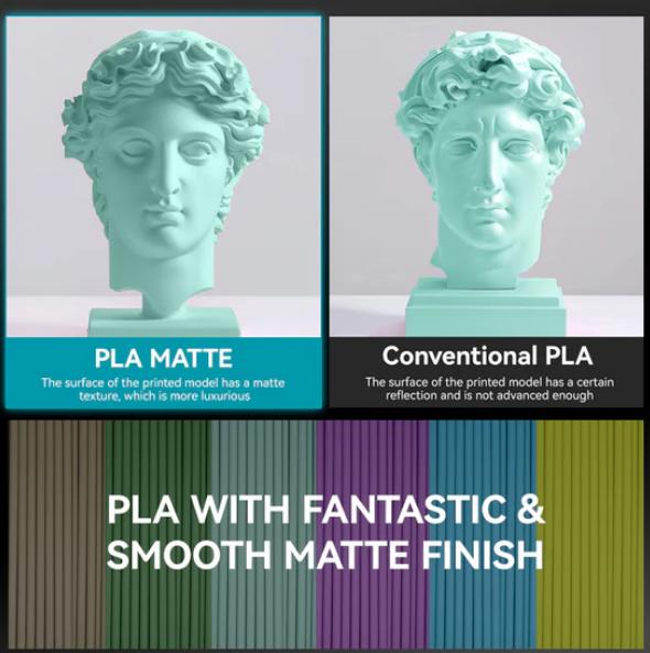 【Fantastic & Smooth Matte Finish】The SUNLU PLA matte filament finish is great and really helps to hide layer lines,bringing out other details of the print Prints smooth and has a beautiful matte finish.SUNLU nice PLA matte filament is achieved without compromising bed and layer adhesion, which results in beautiful and fairly strong PLA filament parts.Almost metallic finish and soft smooth finish.