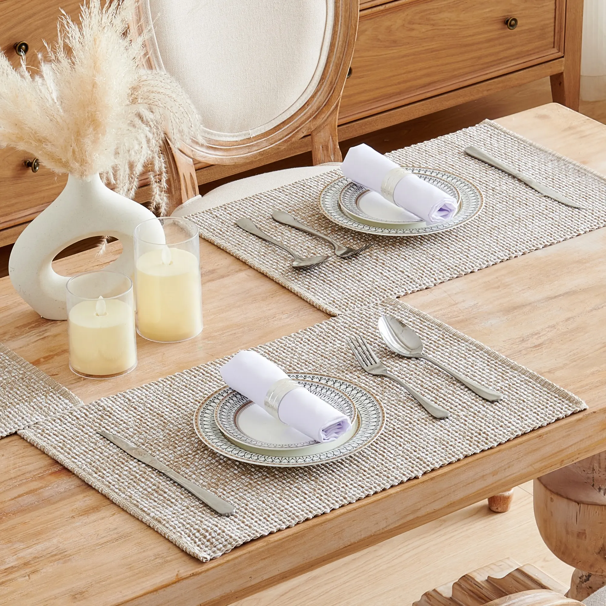 Our placemats are not only aesthetically pleasing but also practical, providing a protective barrier for your table against spills and stains. The durable construction ensures long-lasting performance, making them an excellent investment for your dining decor.