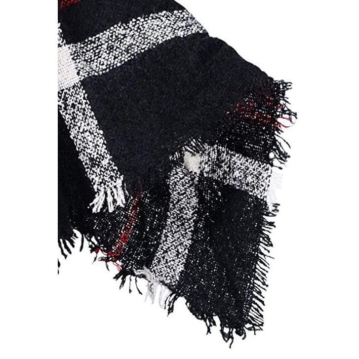 Plaid Checker Pattern Distressed Woven Shawl Cape
