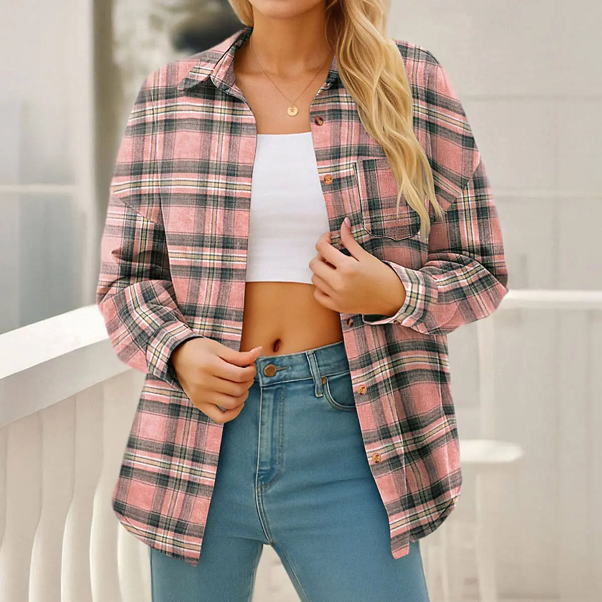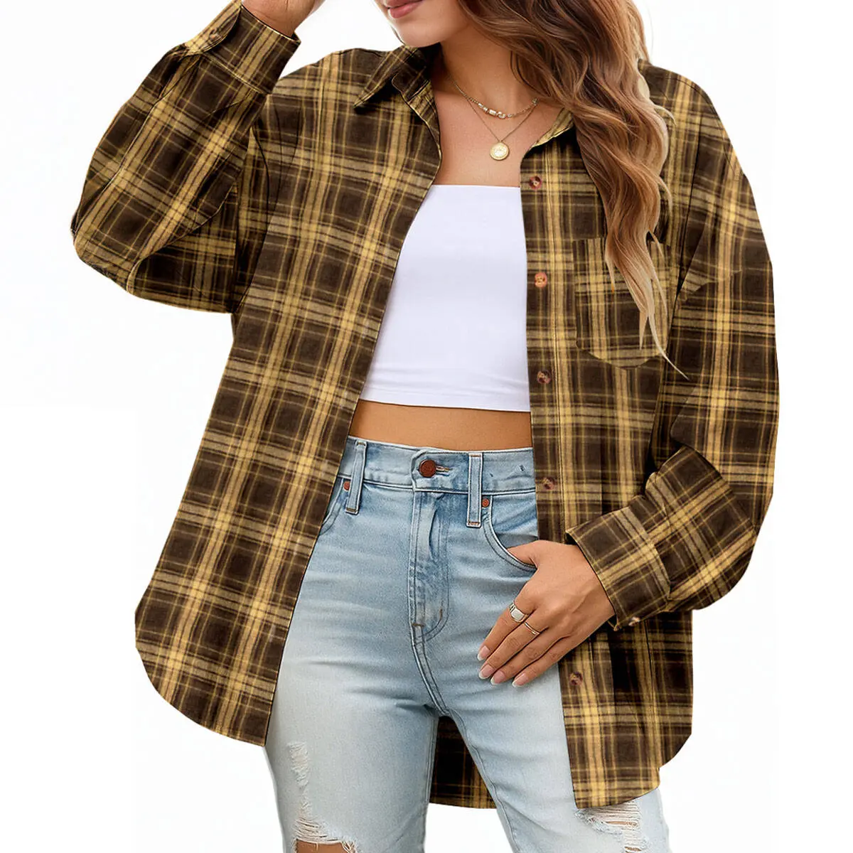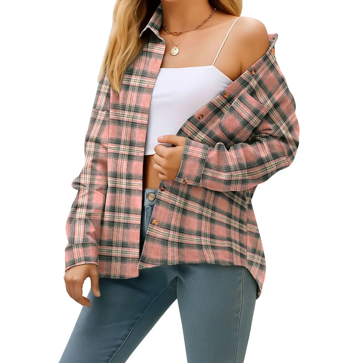 ·Features:This women's long-sleeve flannel plaid shirt is crafted from a premium blend of 50% Cotton+50% Polyester, offering a medium-lightweight fabric that’s both breathable and comfortable. Combining the softness and skin-friendly feel of cotton with easy care, it’s perfect to wear alone or layer during early autumn. The classic plaid pattern adds a timeless rustic charm that effortlessly enhances any outfit’s style.