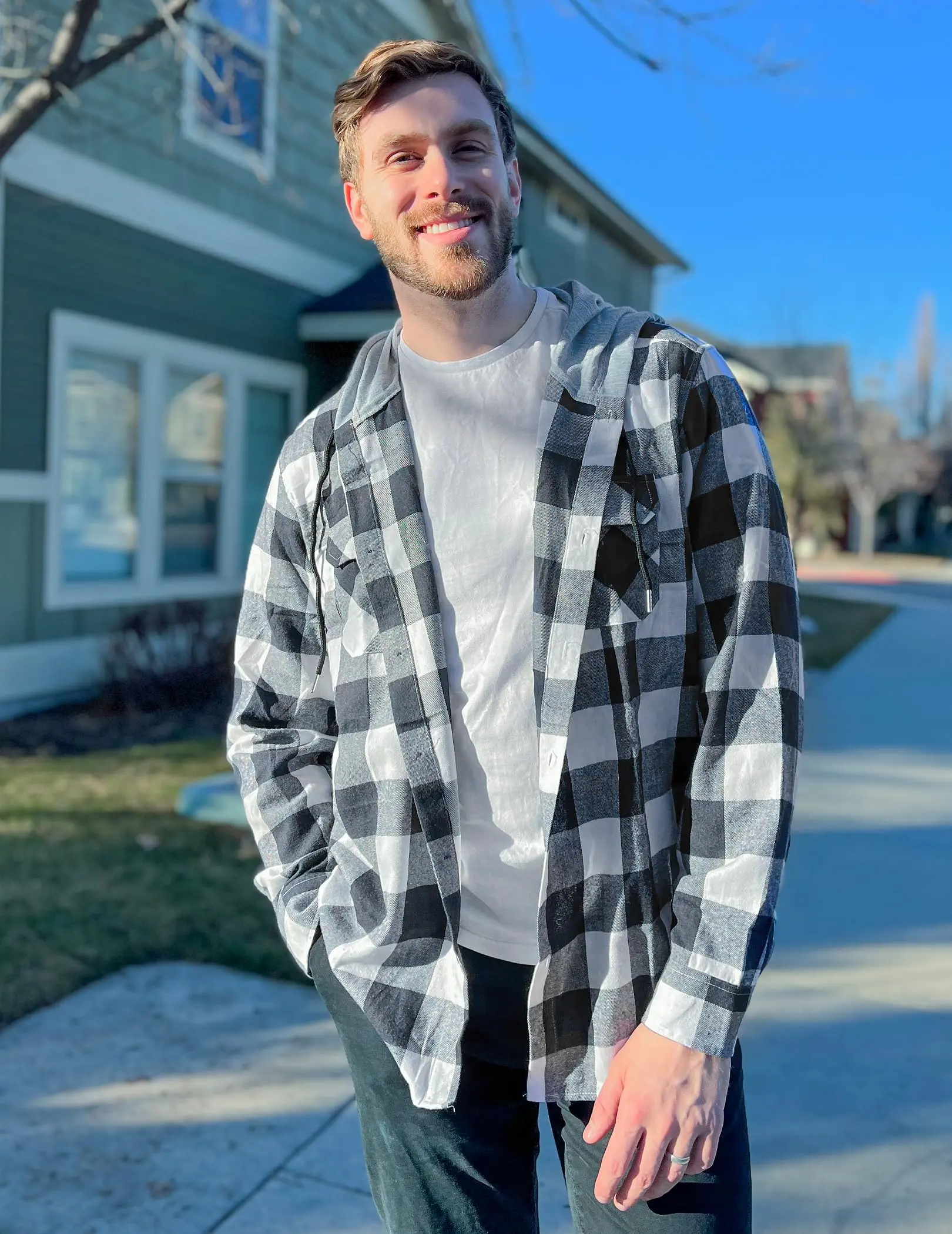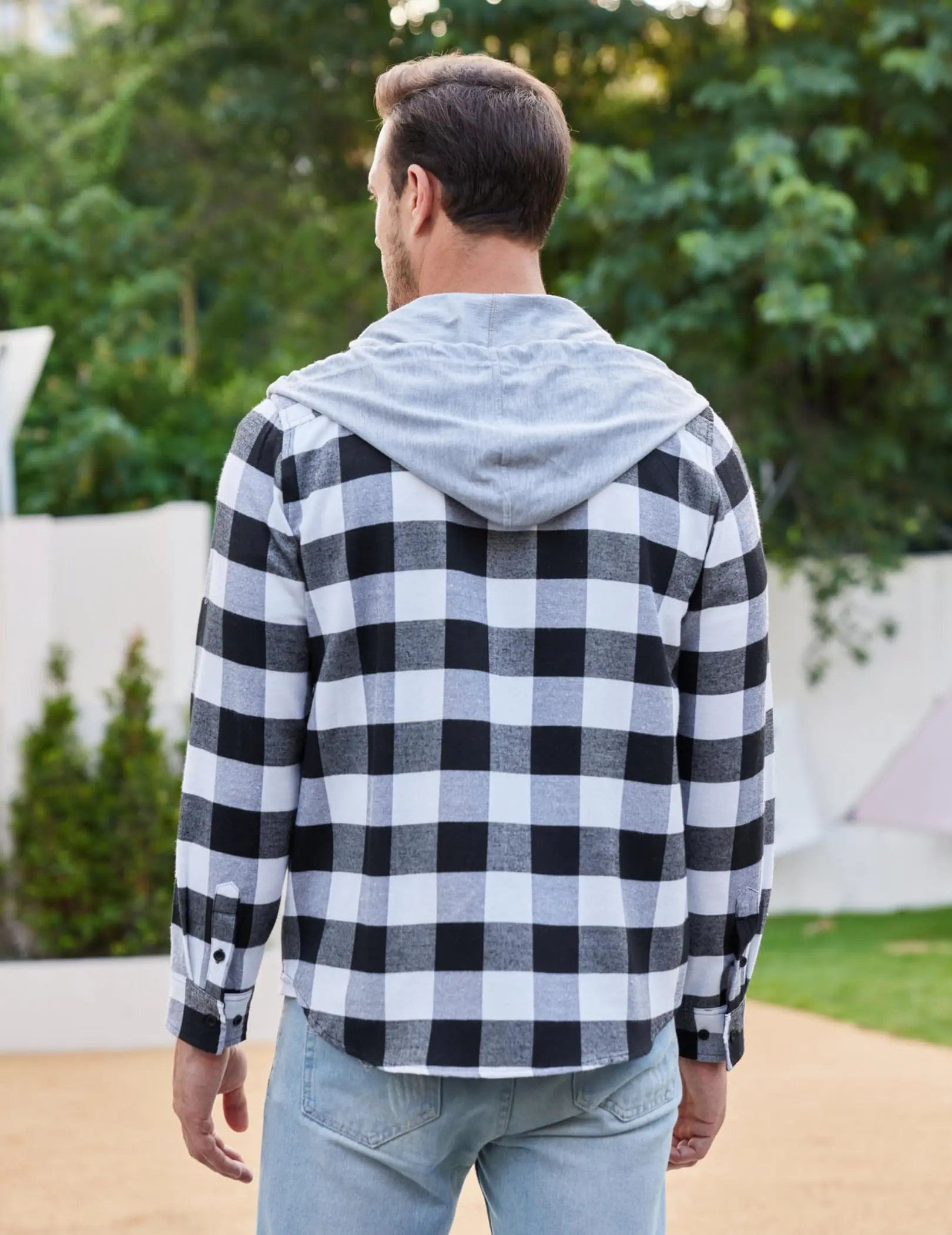 ·Flannel Plaid Shirt: COOFANDY Men's flannel hooded jackets is made of a scientifically blended fabric of 50% cotton and 50% polyester. Designed for "fresh breathability, lightness and versatility", it offers an ultra-light wearing experience — perfect for daily commuting, standalone wear in spring and autumn, or as an inner layer. All our fabrics have passed textile product quality inspections. The cotton-polyester blended structure retains the skin-friendliness of cotton while incorporating the wrinkle-resistant and shape-retaining advantages of polyester, fully meeting daily needs for regular wear and washing.