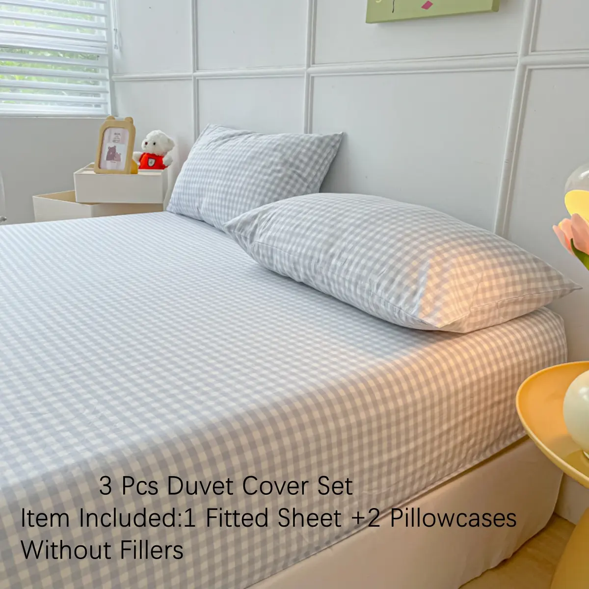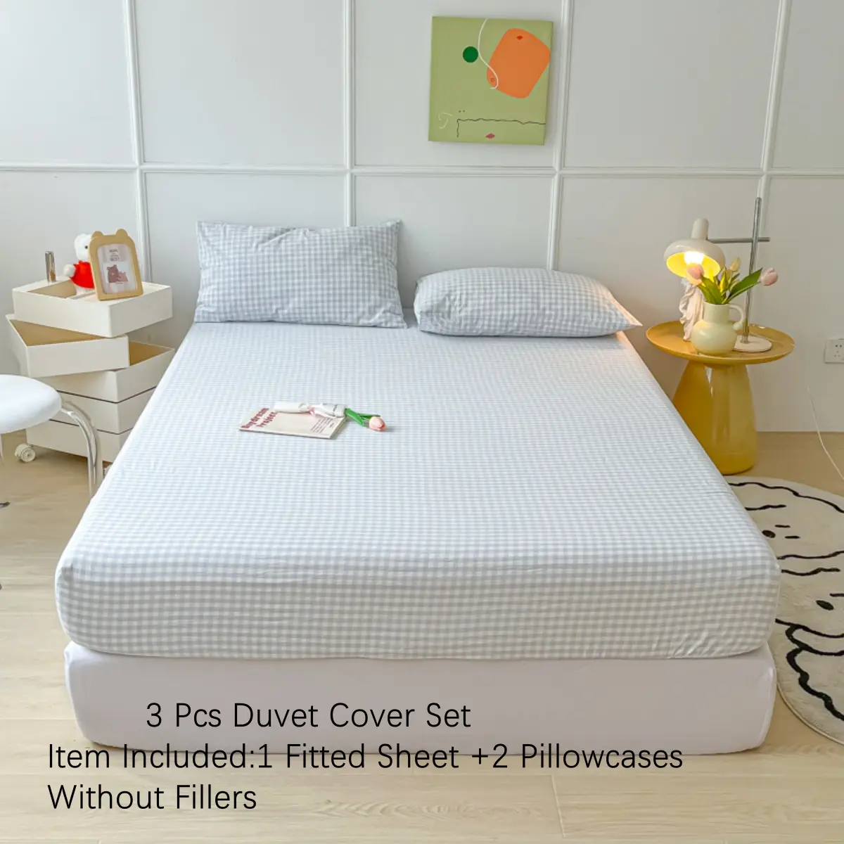 3 Pcs Plaid Pattern Fitted Sheet, Minimalist Modern Style Fitted Sheet Flat Sheet for Bedroom, Soft and Comfortable Bedding, Stylish Home Decoration, Bed Sheets Set