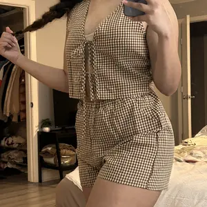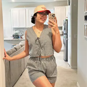 Beautiful summer set! I love the gingham print and the fact I can mix and match the top and bottom separately. I normally wear 10-12 US and went with the XL. Some cons: some stitching are not done (loose threads) and no pockets 😔