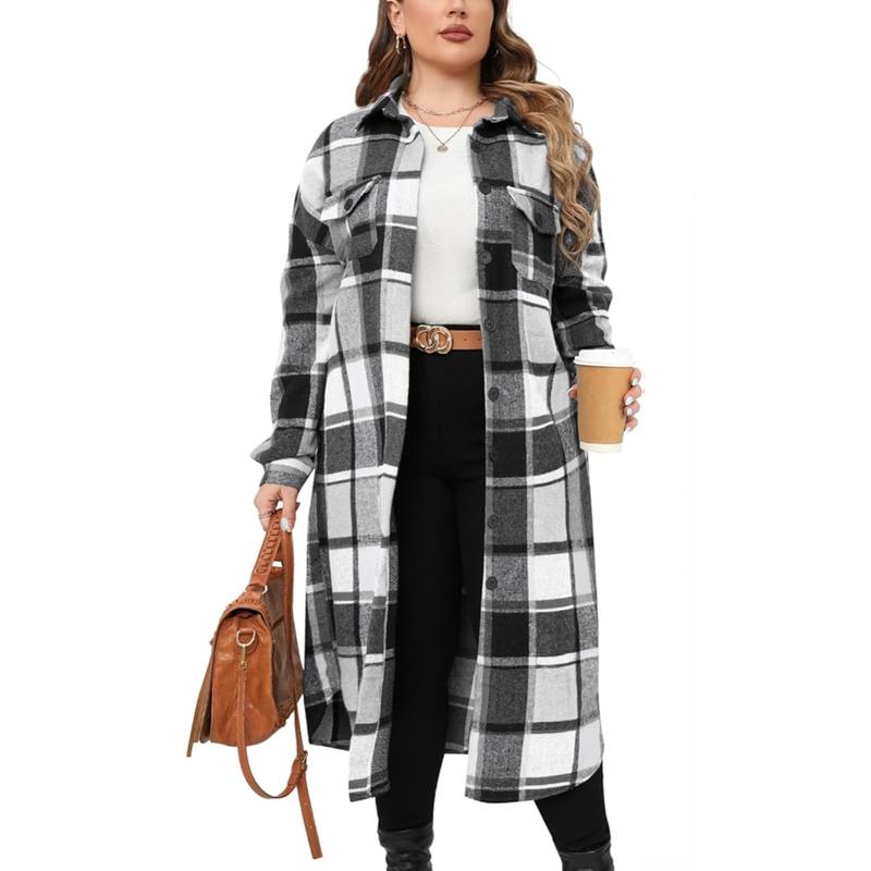 Ā·Classic fall check jacket shacket: retro and chic, long sleeve flannel shirt, long lightweight plaid jacket plus size for home, work, streetwear, holiday, office, travel, Christmas, daily, outdoor, party, dating, etc.
