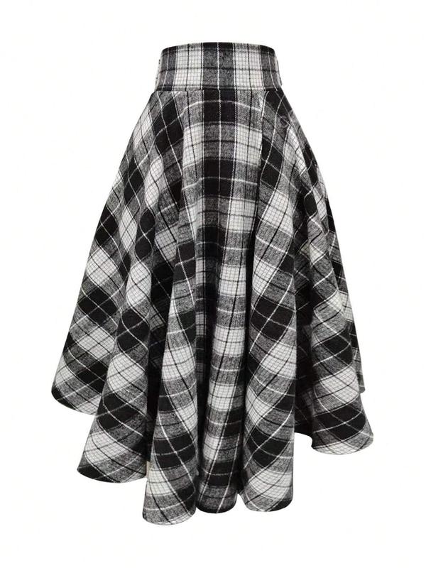 5. Women's Plaid Print Tie Front Split Thigh Shirt Skirt, Street Fashion Casual High Waist Long Skirt, Split Hem Skirt for Daily Outdoor Wear, Women's Bottoms for Spring & Fall
