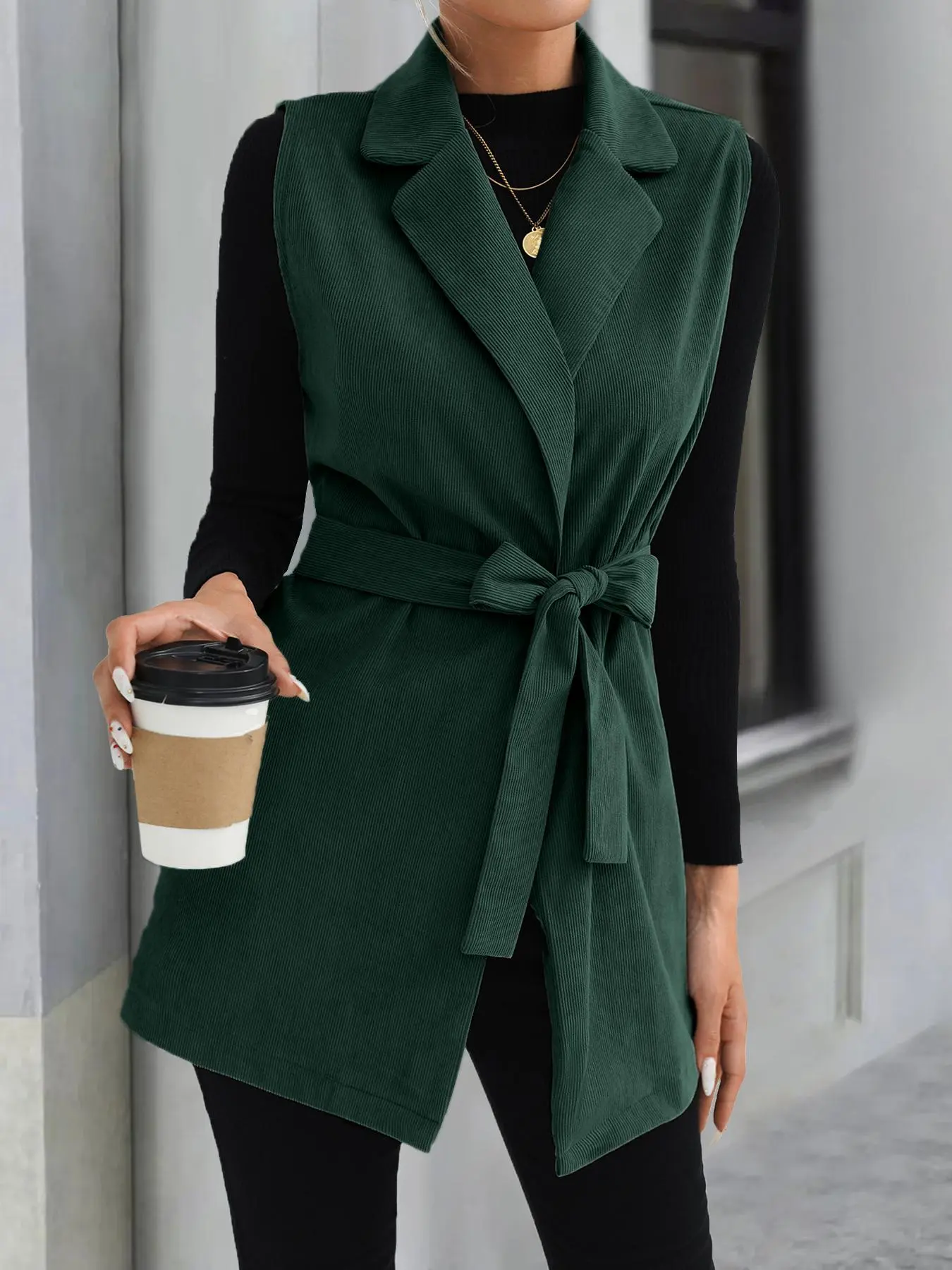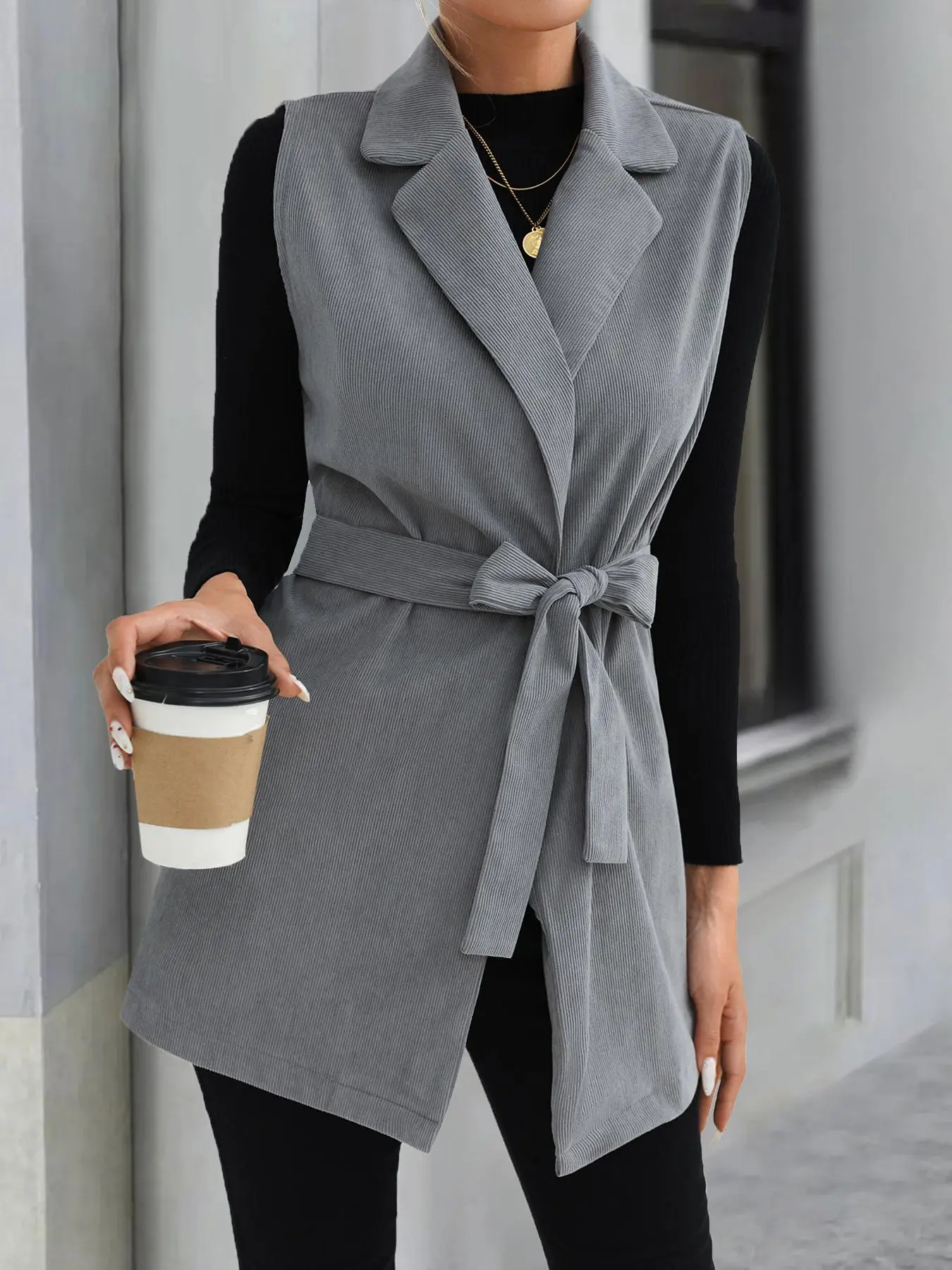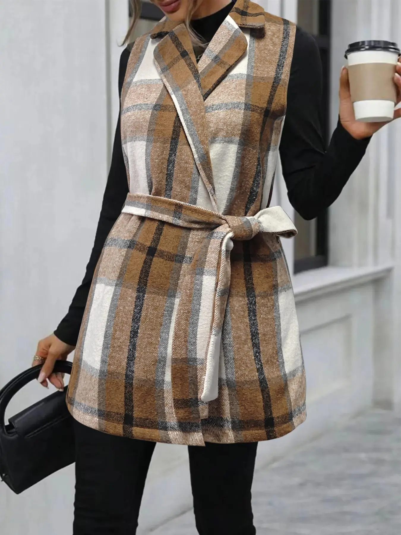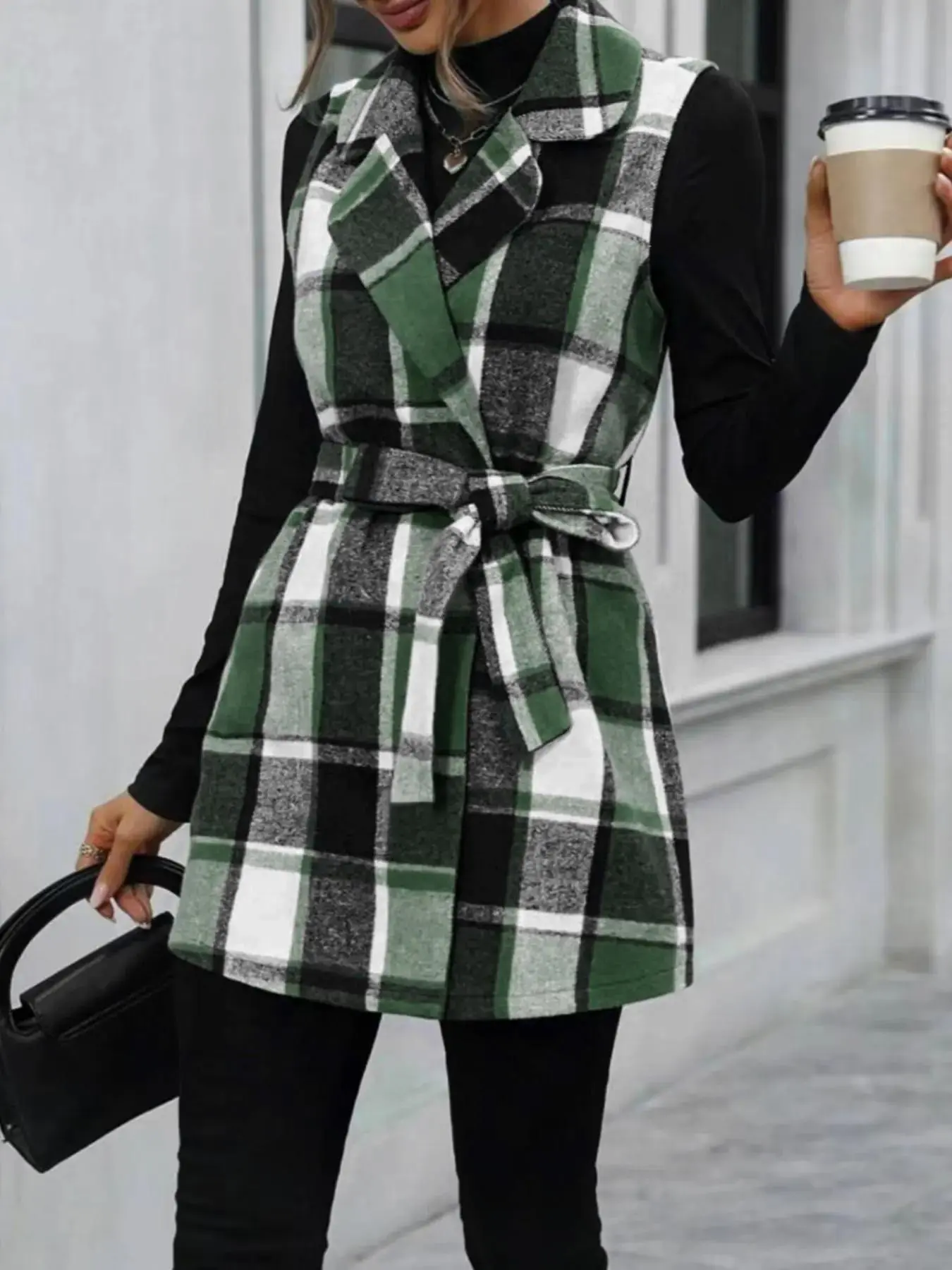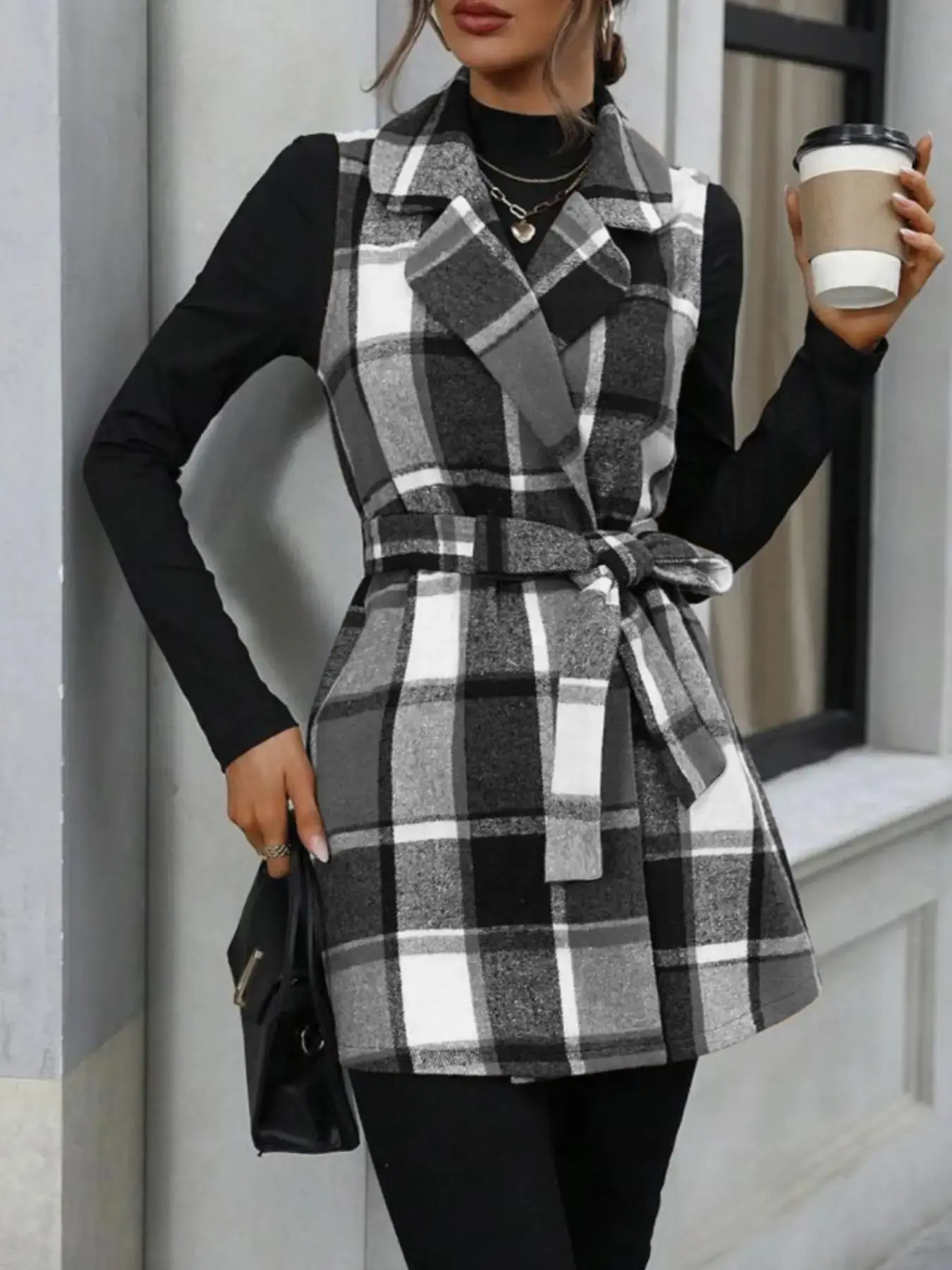 It also has a belt for the blk n w and brown is button up just add a belt of your own . Wear with boots n turtle neck - jeans