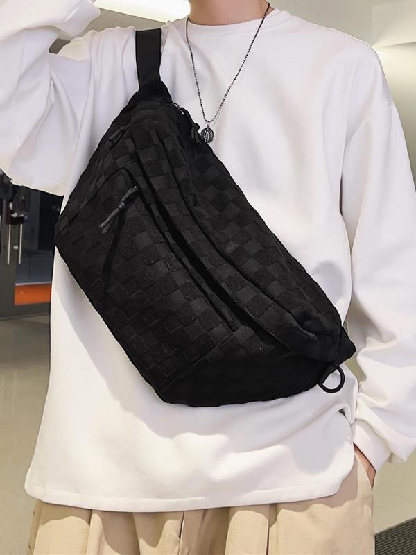 【Grid Detail】: Showcasing unique grid detailing, this chest bag stands out from typical waist bags with its distinctive look.