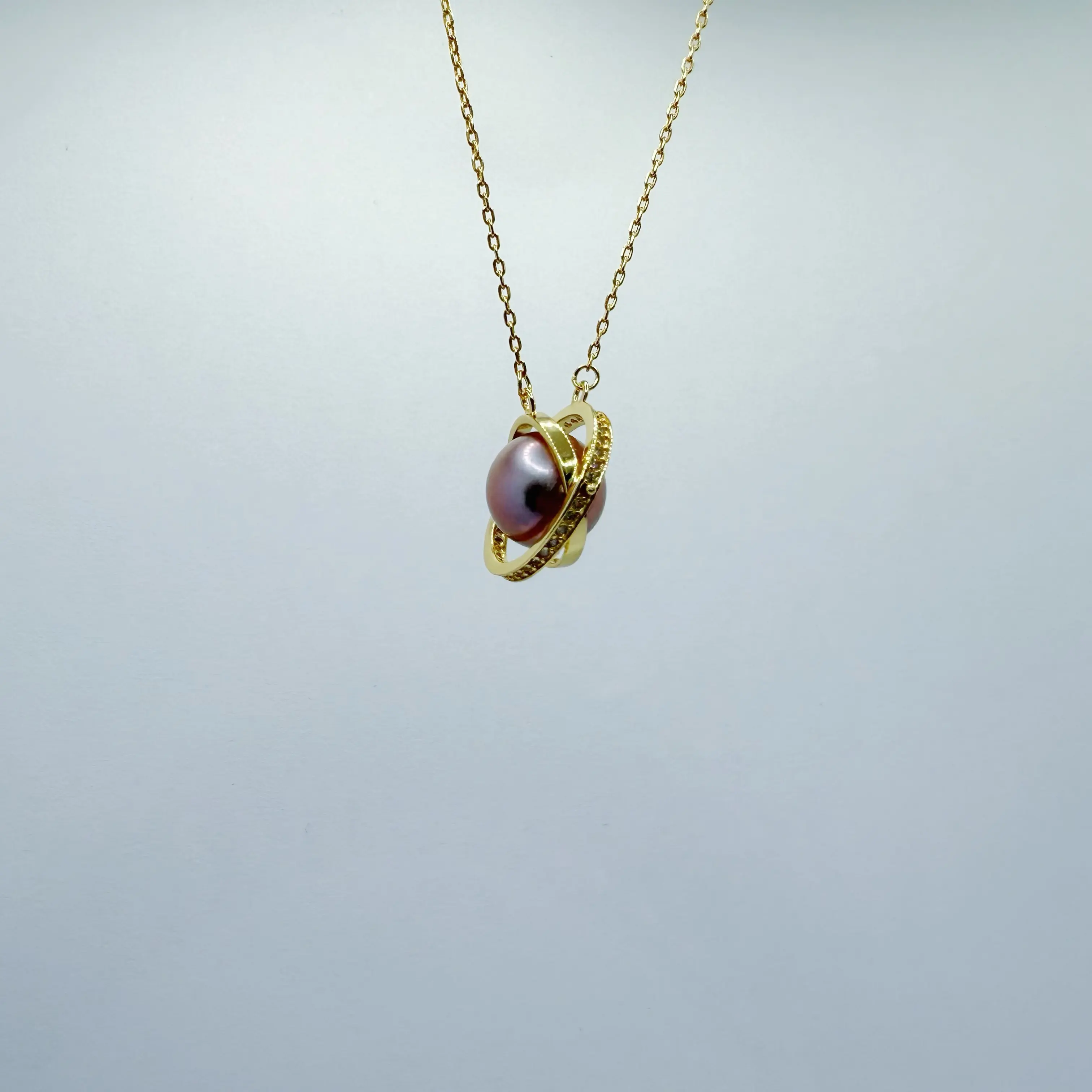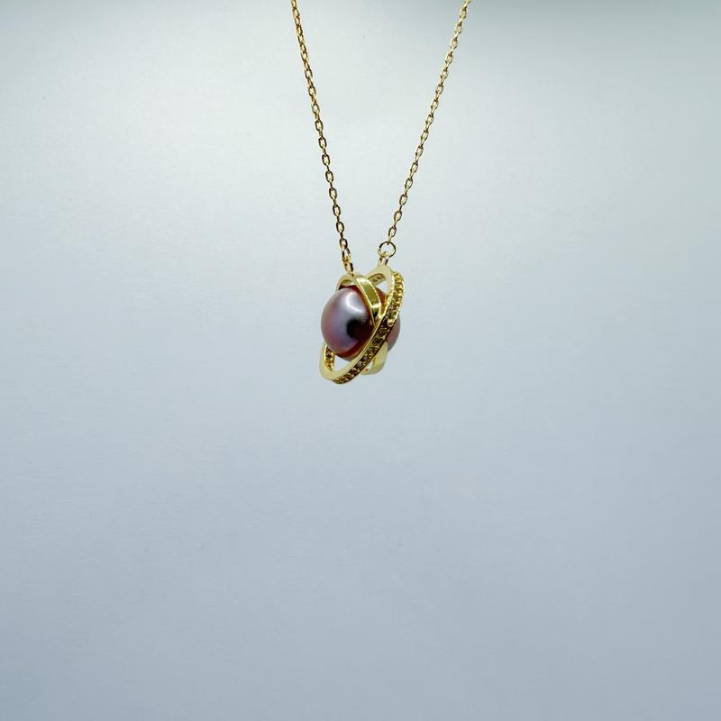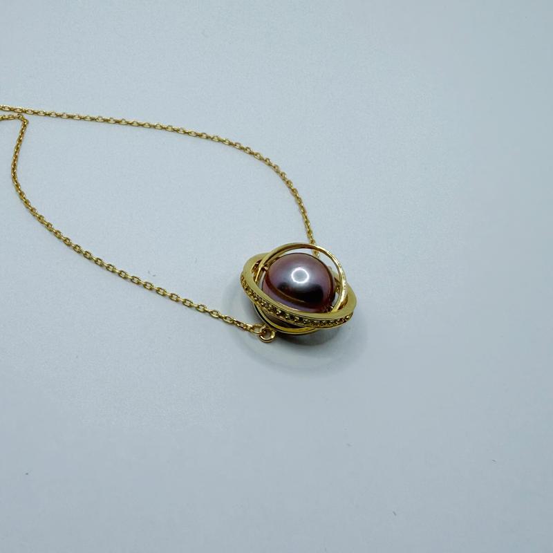 5. PEARLISM Planet Design Edison Pearl Necklace Freshwater Pearl Necklace Spinnable (9-10mm)-AFEN002