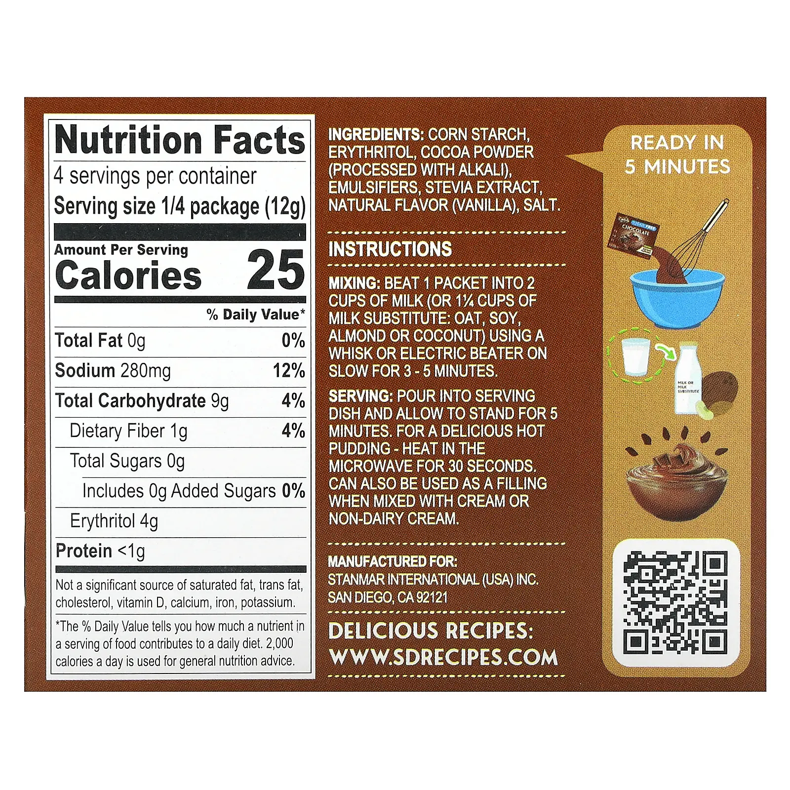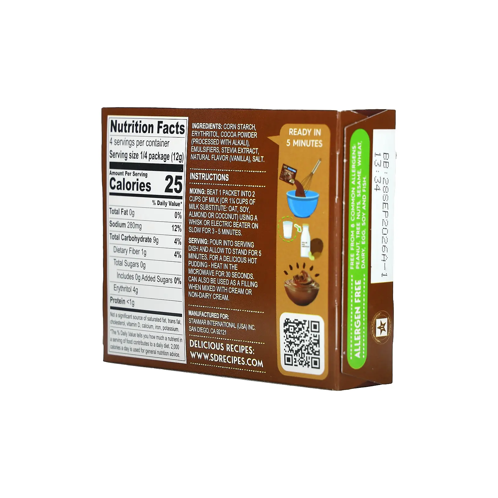 5. Simply Desserts Plant-Based Instant Pudding, Chocolate, Sugar Free, 1.7 oz (48 g)