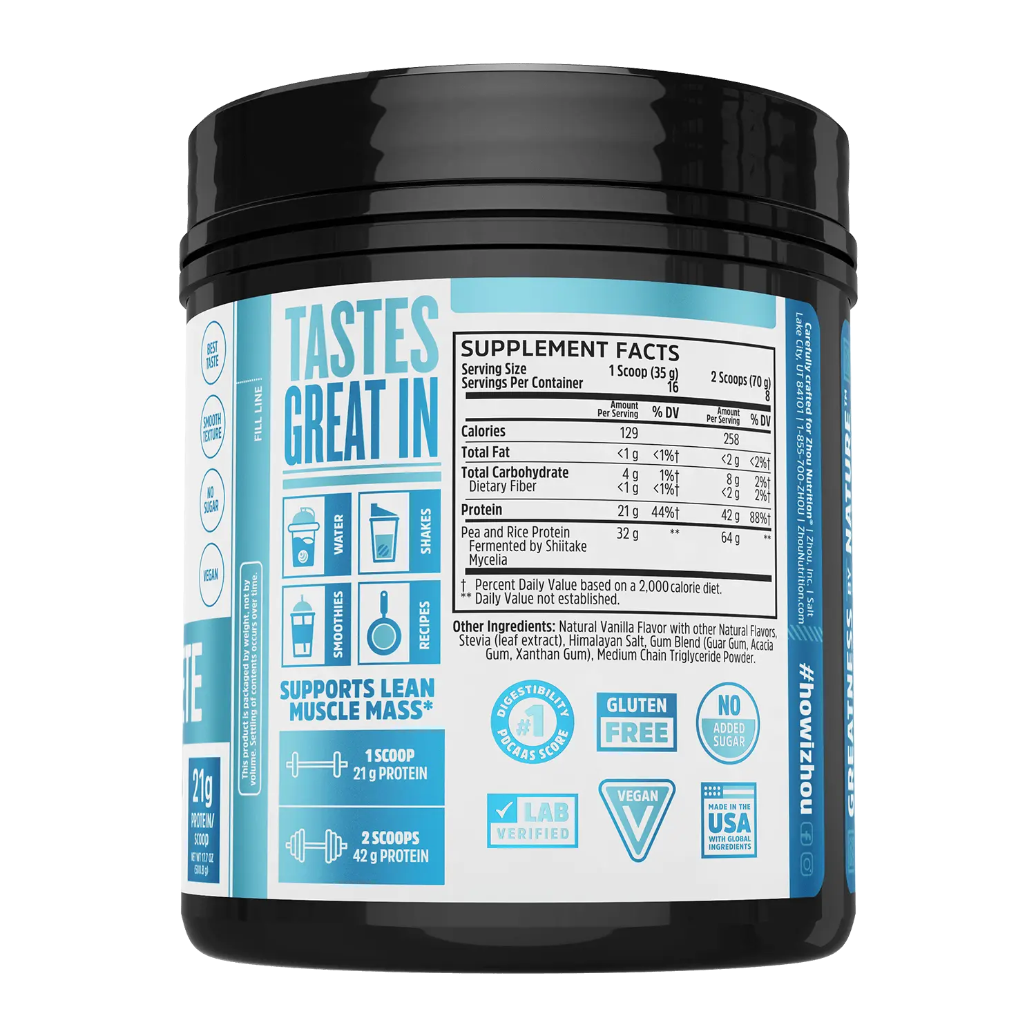 ·Enhances taste and texture, offering a smoother experience than typical gritty vegan proteins.