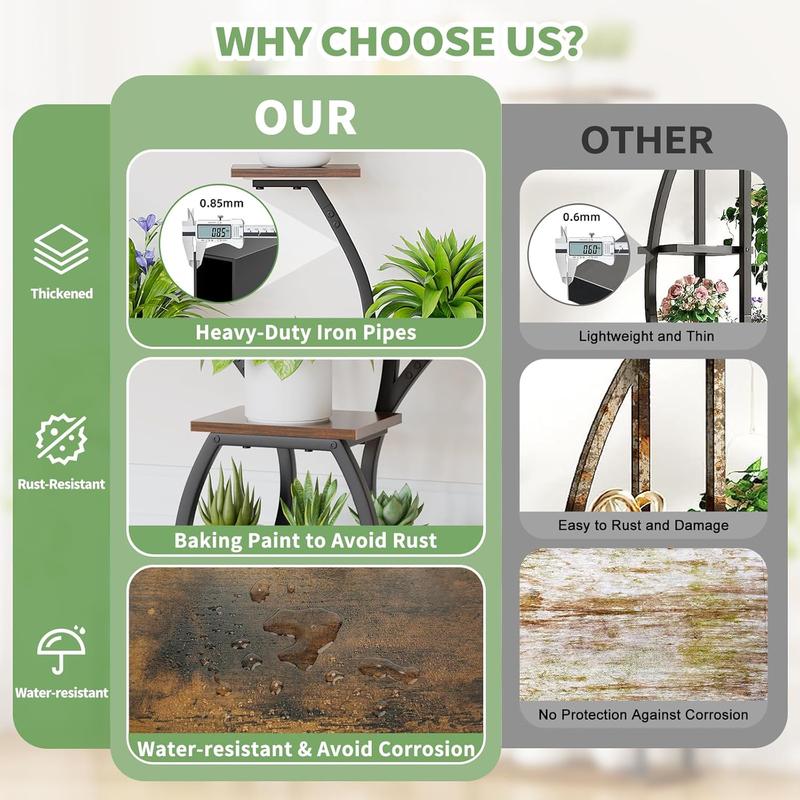 ·【Easy to Assemble and Safe】 This indoor plant shelf comes with all necessary hardware for easy assembly. It includes an anti-tip strap for added safety, ensuring your children and pets remain secure. The unique flower display stand not only serves as a functional plant holder but also enhances the aesthetics of any living room, corner, or patio.