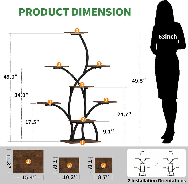 ·【Elegant Tree-Shaped Design】This plant stand indoor feature a tree-like structure, it adds a touch of nature, artistic flavor and vitality to your living room, bedroom, or porch. Boasting an six-layer shelf, this tiered plant stand efficiently utilizes vertical space, providing ample room to display your plants and completely saying goodbye to cluttered plants in the room.