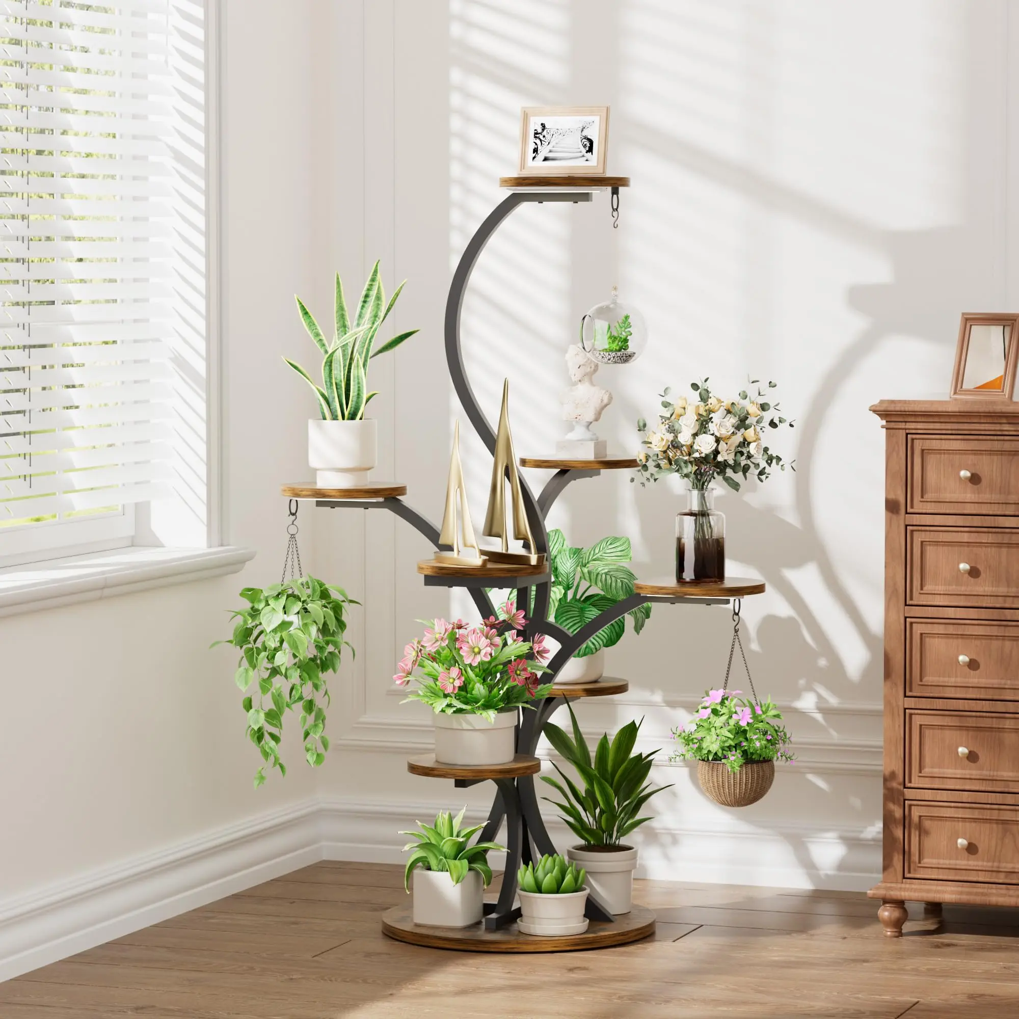 ·【Three-dimensional Tree-Shaped Plant Stand】 Our one-of-a-kind plant stand features a stunning design that resembles a tree, bringing a natural and artistic touch to your home, creating a visually appealing display. This stand not only serves as a functional plant holder but also as a statement piece that enhances the aesthetic of any room, making your home feel more vibrant and stylish.