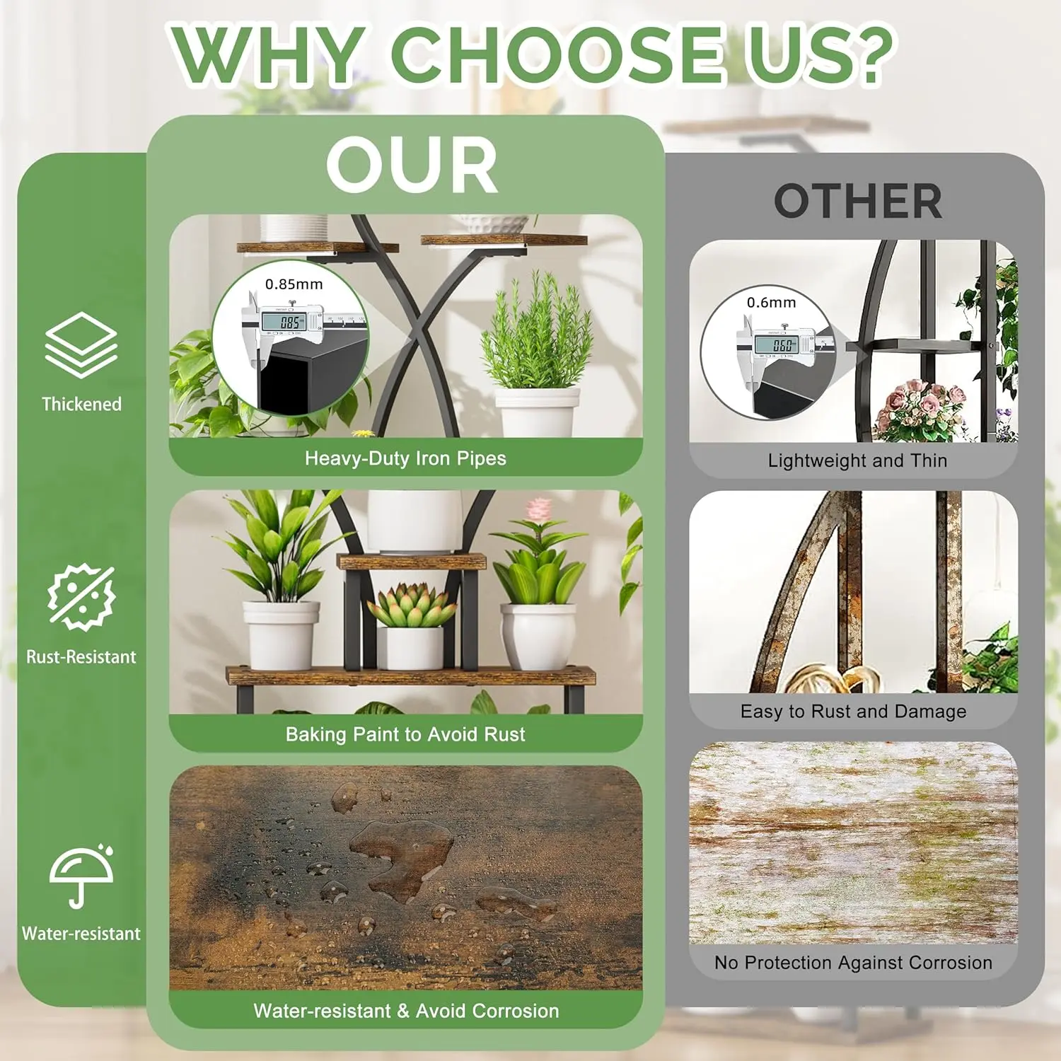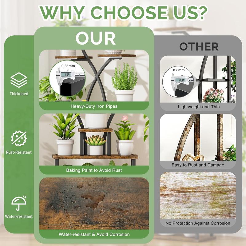 ·【Easy to Assemble and Safe】 This plant shelf indoor comes with all necessary hardware for easy assembly. It includes an anti-tip strap for added safety, ensuring your children and pets remain secure. The unique flower display stand not only serves as a functional plant holder but also enhances the aesthetics of any living room, corner, or patio.