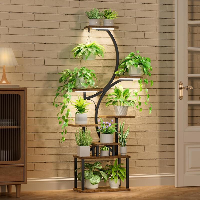 ·【Plant Stand with Grow Lights】 To promote the healthy growth of indoor plants, we have equipped this indoor plant stand with full-spectrum, timer-enabled and multiple adjustable grow lights to meet the lighting conditions that plants need most at different stages. Three-head grow lights ensure that plants on all layers receive ample light. You can place this plant shelf indoors anywhere. No need to frequently move plants outdoors to absorb light.