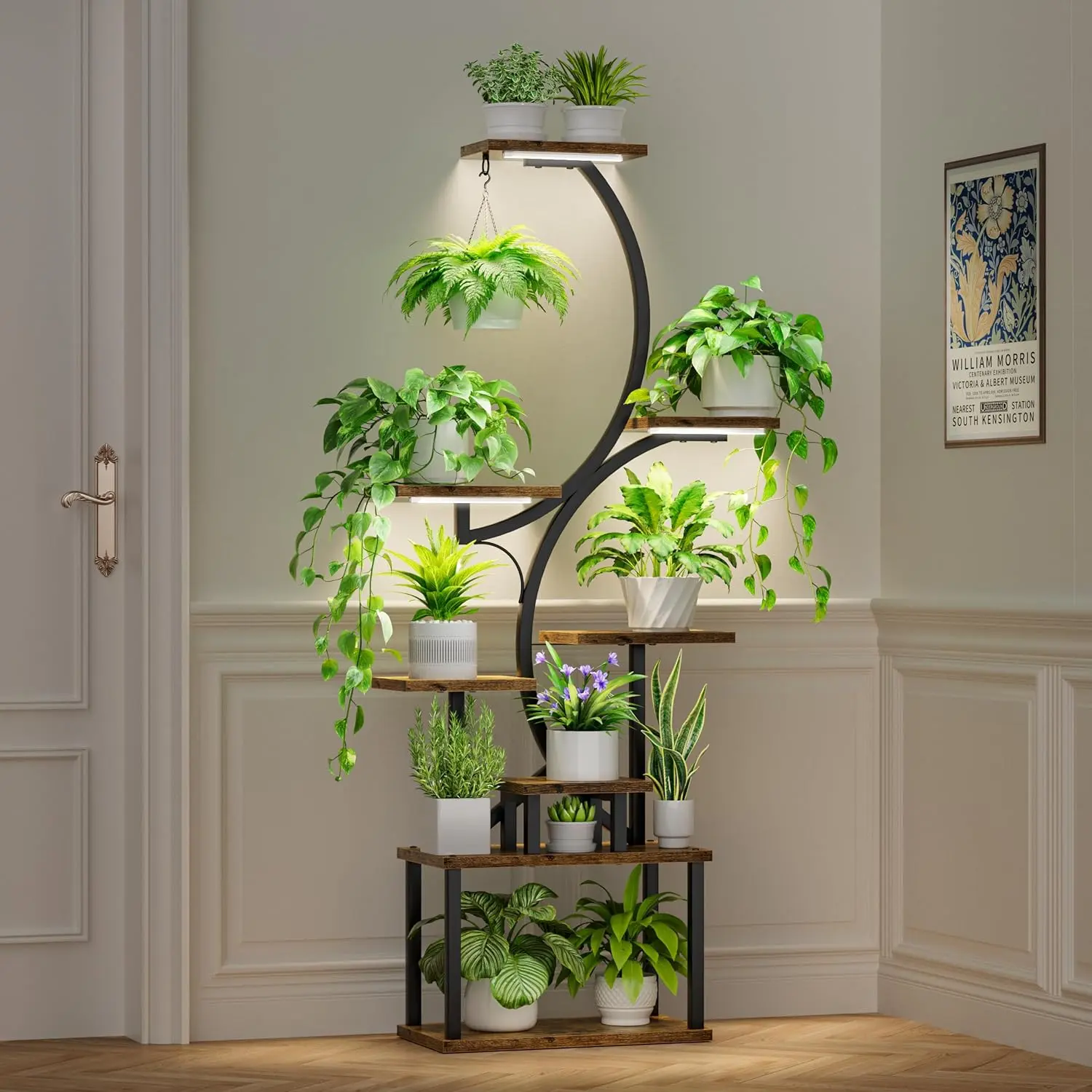 Β·γPlant Stand with Grow Lightsγ To promote the healthy growth of indoor plants, we have equipped this indoor plant stand with full-spectrum, timer-enabled and multiple adjustable grow lights to meet the lighting conditions that plants need most at different stages. Three-head grow lights ensure that plants on all layers receive ample light. You can place this plant shelf indoors anywhere. No need to frequently move plants outdoors to absorb light.