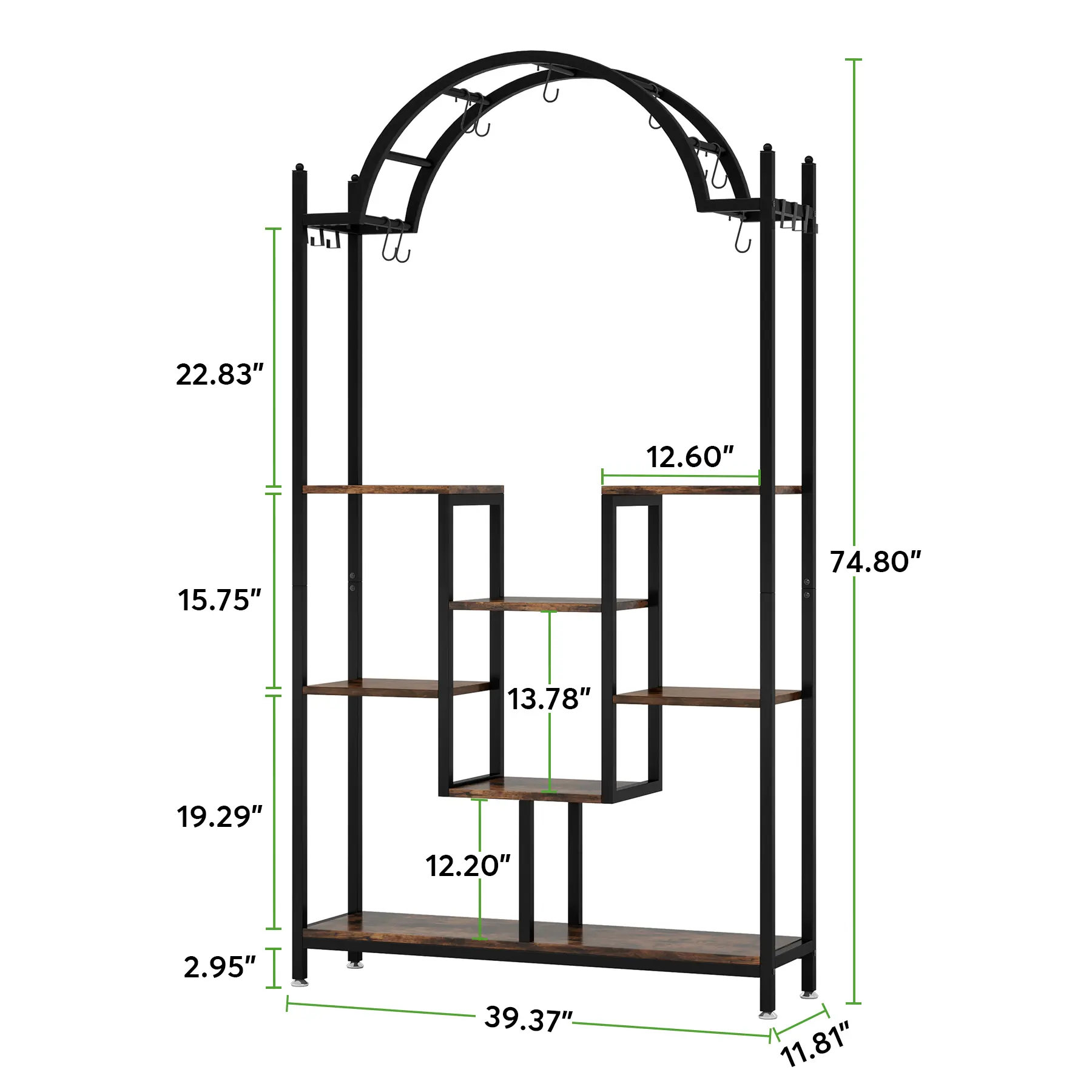 Hanging Hooks: Each side with 3 square hooks and attached 8 S-hooks for Hanging pots and decor your home