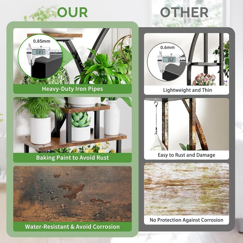 ·【Sturdy Structure】This metal plant stand features a heavy-duty iron frame for stability and durability. The iron pipes have a baked paint coating to prevent rust, while the particle board’s waterproof layer resists seepage and peeling, ensuring easy cleaning and maintenance.