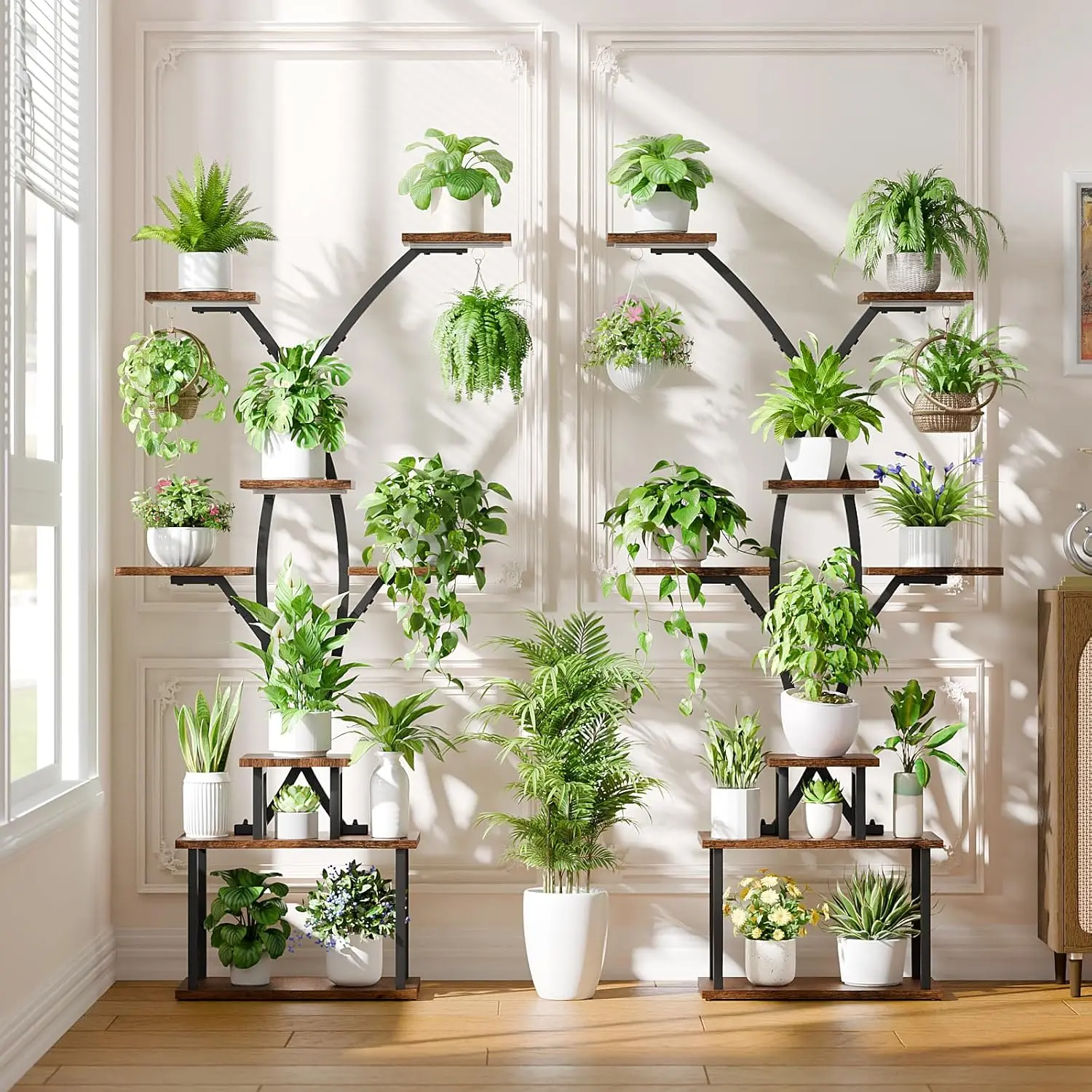 ·【8 Tiered Design】This 64-inch, 2-piece tiered plant stand features 16 layers and 4 hooks for hanging potted plants, providing efficient and ample storage space. It allows you to display plants without overcrowding them and offers flexibility in positioning the two stands according to your room’s layout. Perfect for decorating corners, it also helps save space in your home.