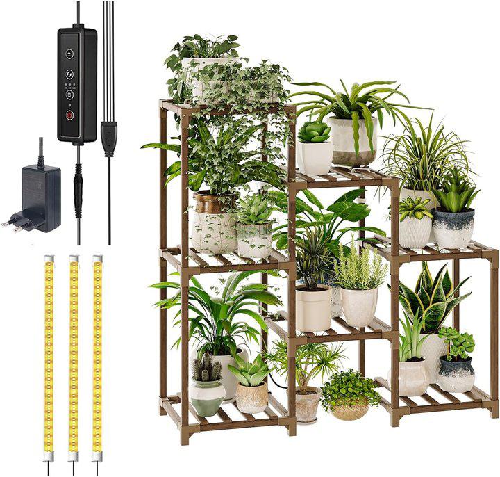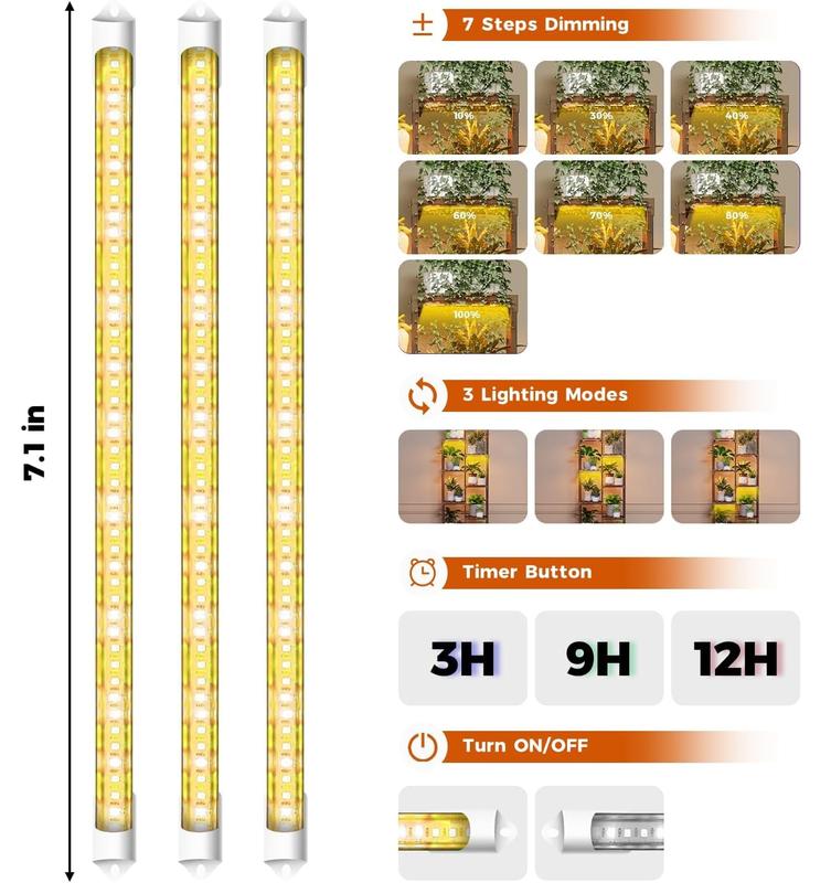 ·Flower Stand with Grow Light: The plant light contains 3 supplemental light modes: 1. 48 leds warm white(3000k), only 3000k high uniform light ,like sunlight improve seeding growth ; 2. Warm (660nm): promote plant growth , flowering and fruit; 3. Full Warm White (380nm-780nm), Provide universal full spectrum which can meet the light conditions your plants need most in different stages