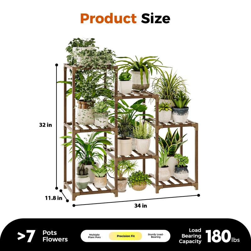 ·>7-Pots Plant Stand: Featuring a ladder design that allows unobstructed sunlight, this plant rack accommodates more than 7 pots, making it an ideal decorative piece for organizing your plant collection. Suitable for both indoor and outdoor use.