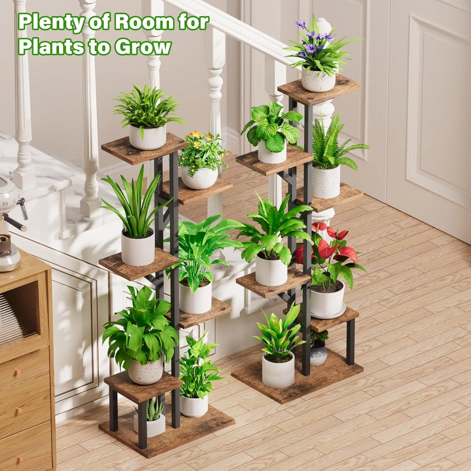 ·2 Pack, 40.4" Tall, 12 Tiered Plant Stands - The vertical design of these plant stands provides ample space for multiple small to medium-sized plants, catering to various gardening needs and making them ideal for homes with limited space. In addition to planting, they can also serve as chic display spots for photos, books, and crafts, enhancing the aesthetic appeal and functionality of any room