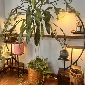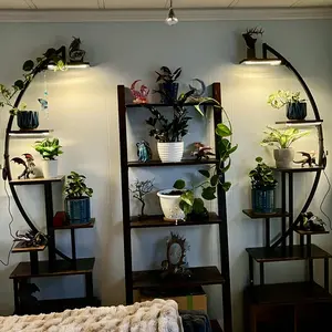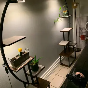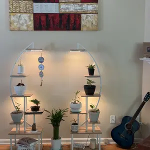 ·【Great Gift for Plant Lovers】 Designed with a curved shape like the half-moon, this floor plant stand with light (includes two shelves) is a unique and artistic addition to your home beauty. You can place it in your living room, bedroom, porch, balcony, etc. And place many decorations, not just plants. It is also a creative indoor garden gift for yourself, your family or friends.
