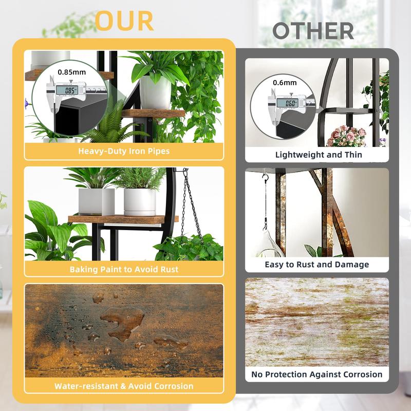 ·【7 Tiered Indoor Plant Stand】 This 64" tall plant stand set has 7 tiers, 14 potted stands, and 2 hangers which provdes large storage space for you to display plants as much as possible. Some levels can even accommodate two plant pots. In addition, this plant holder also meets your different demands of placing books, pictures, collections, awards, knacks, artworks, craft works, and so on.