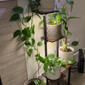 ·[Plant Stand with Grow Lights]: Enjoy the aesthetic appeal of our plant stand with grow light to enhance the beauty of your interior space. It comes equipped with 4-head full spectrum grow lights, featuring a timer, and 10-level dimming to cater to the diverse needs of plants throughout their growth stages. Let the natural beauty thrive in your living space, no need to frequently move the plant outdoors to absorb sunlight.