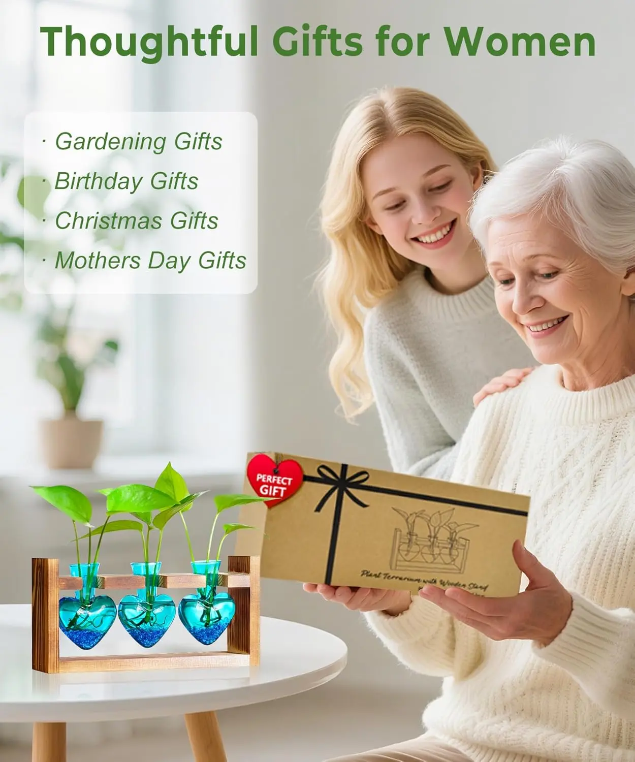 ·Best Gifts for Women: It comes in a beautifully designed box, ready to bring joy to anyone! The heart-shaped design overflows with love, making it a meaningful gift for women,mom, grandma, wife, sister, daughter, co-workers, or friends. Perfect gifts for Mother’s Day, Birthdays, Valentine’s Day, Christmas, Thanksgiving, weddings, or anniversaries, plant lover women praise its sincerity, and it stands out as a decor gift that conveys lasting affection,blending emotional warmth with practical use