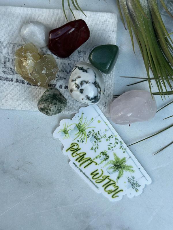Kit includes: 7 crystals, carrying pouch, plant witch sticker & crystal care card