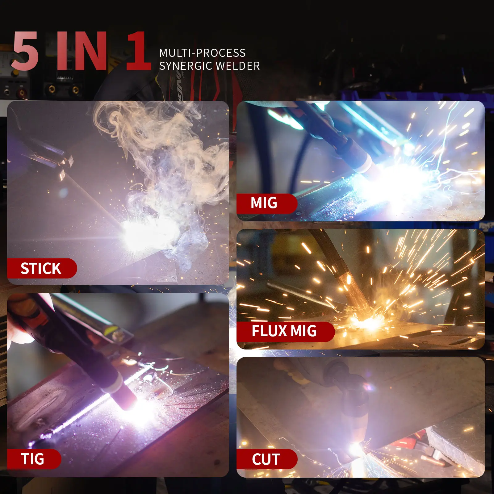 ·5-in-1 Functionality: Supports Plasma Cutter, Welder, Gas MIG, Gasless MIG, HF TIG, and Stick welding.