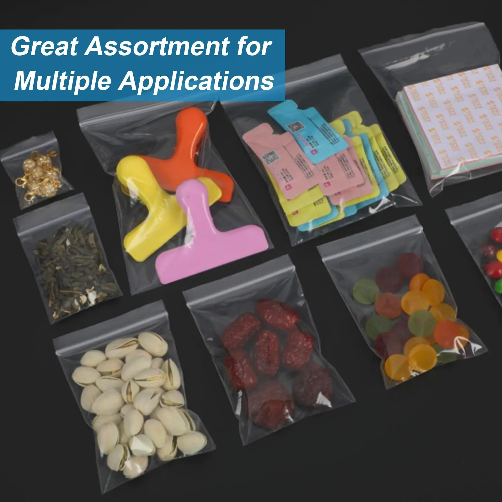 ·Value Pack: Our small plastic baggies pack includes combo of different sizes and quantity, providing you with a variety of options to store different items. Please review carefully before placing the order.