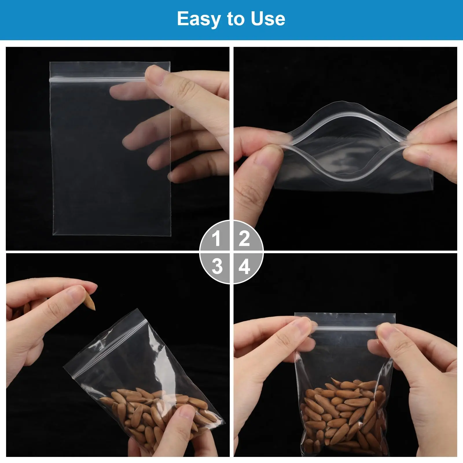 ·Multiple Applications: From organizing small items to storing jewelry, crafting, and packaging products for sale, our plastic baggies are perfect for various storage and organizational needs, both personal and commercial.