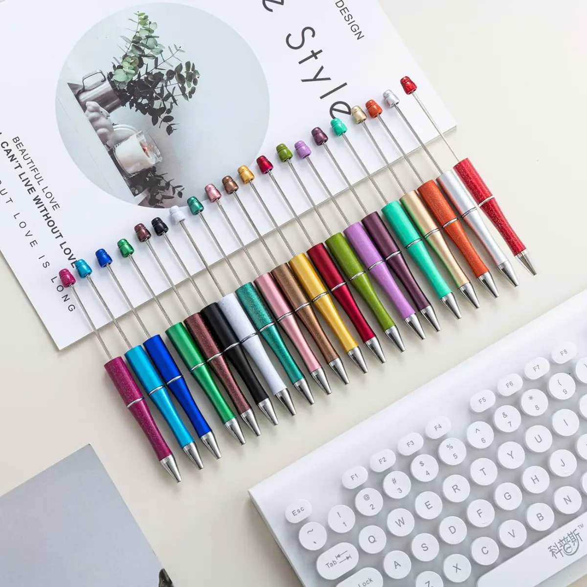 ·💘【Package Details】Get 20 bling plastic beadable pens in 20 different colors! (Please note: beads are not included.)