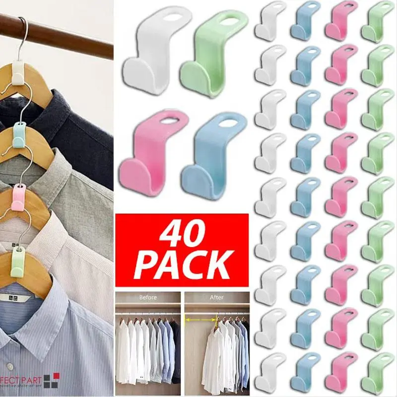 【Easy to Use】This 40 pack space-saving clothes hanger connector can be easily installed and removed, and is easy to use. Simply hang one clothes hanger connector around the neck of hanger and then hang the second hanger on the slot provided for this purpose, freeing up more space in your wardrobe