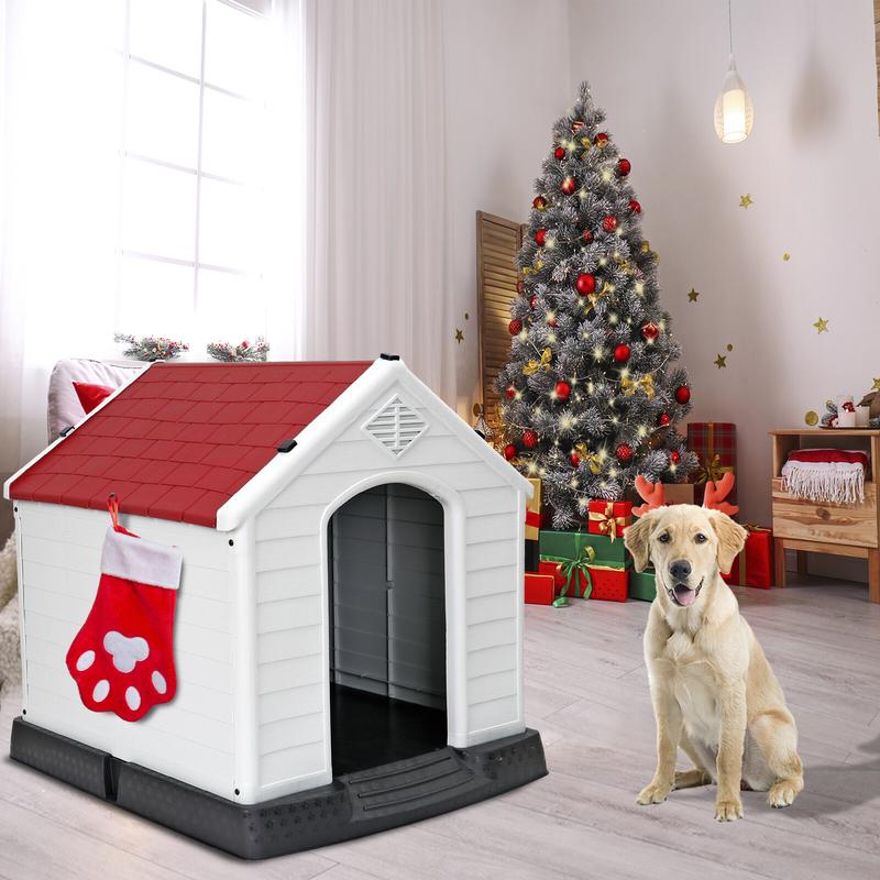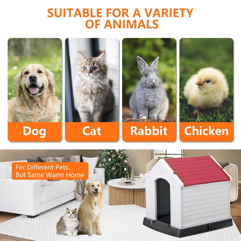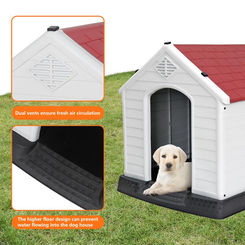 Constructed from durable PP plastic and heat-insulating materials, this dog house is weather-resistant, non-toxic, and anti-corrosion. It is secured with snaps, screws, and ground nails to ensure stability.