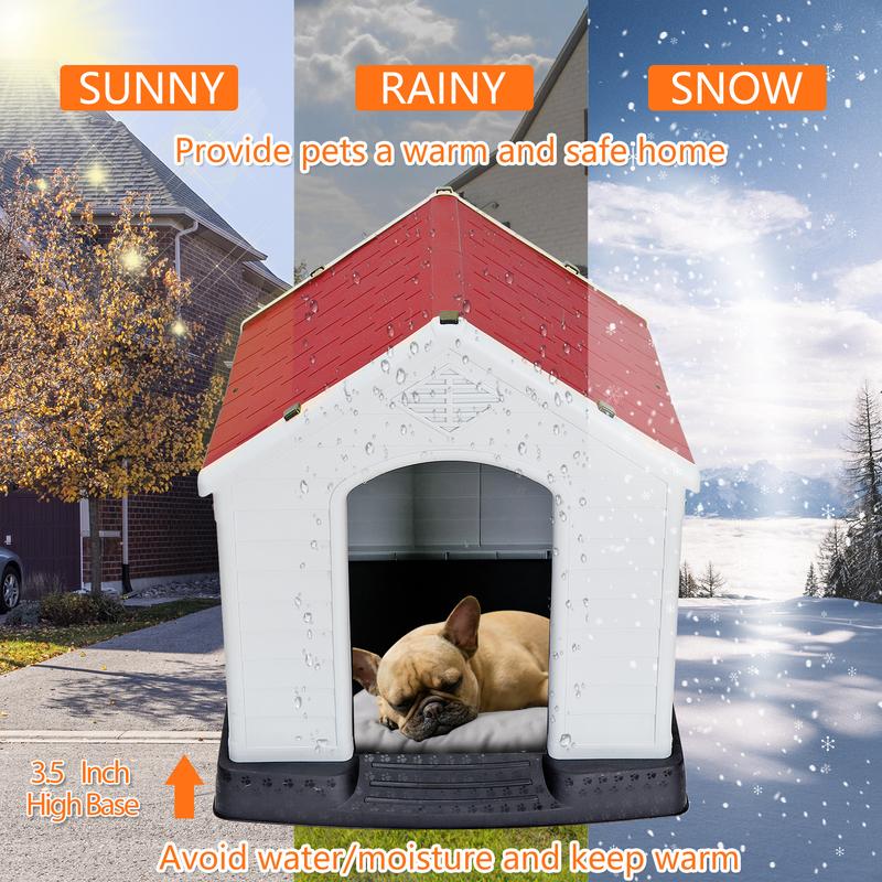 The sloped roof prevents rainwater accumulation, and the 2.7" raised floor keeps moisture out, protecting your dog from dirt, wind, rain, and snow while providing a strong and warm shelter.