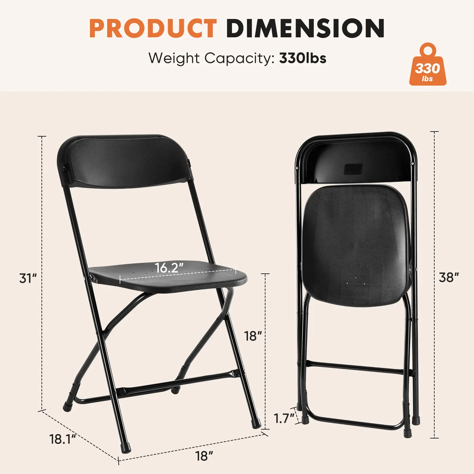 ·Stability & Safety: The folding chair has a metal plate underneath the seat that is made of thickened steel and has a strong weight capacity of up to 330 pounds sitting on the seat. This design ensures that the chair will not destabilize or deform when bearing weight, while also providing you with a comfortable and secure seating experience!