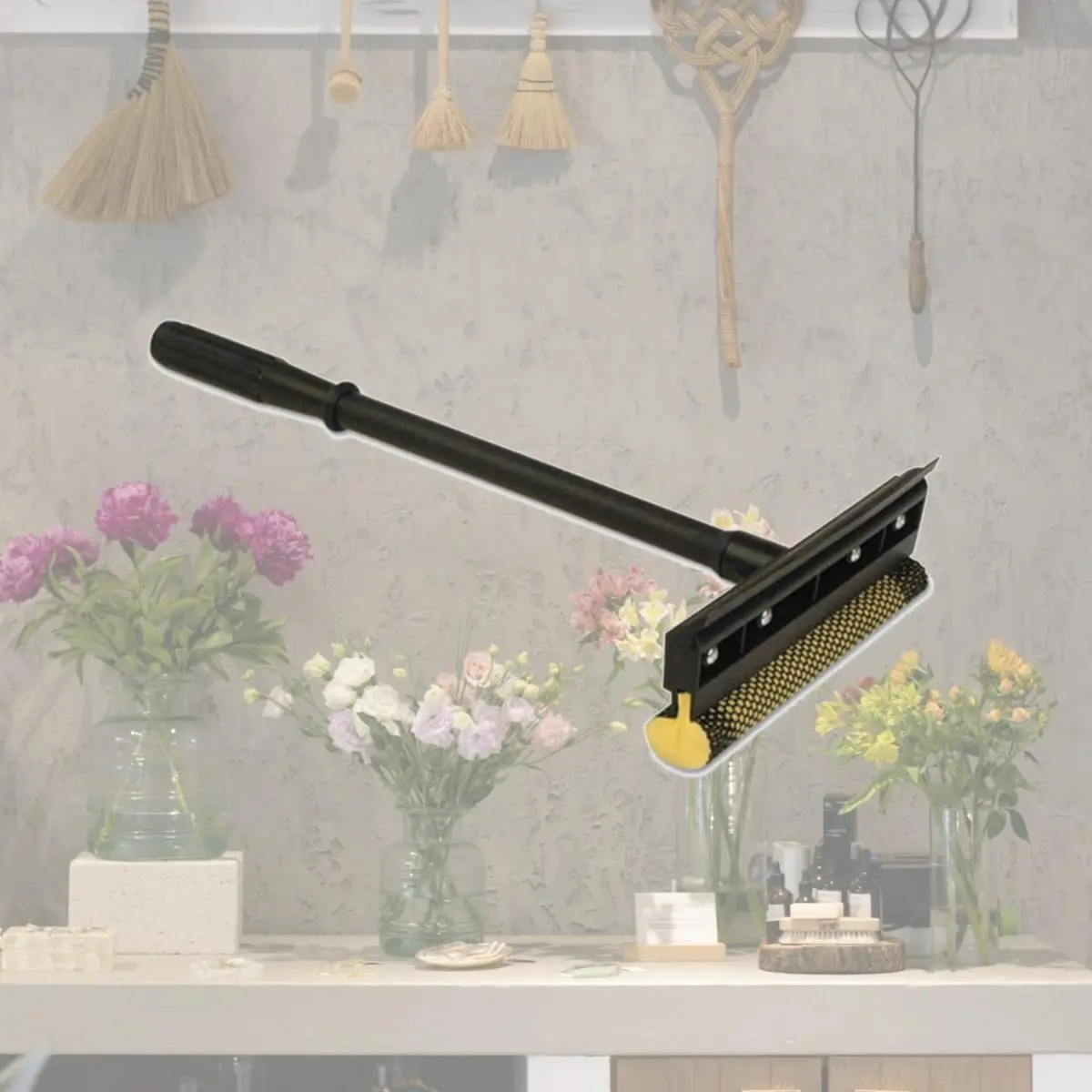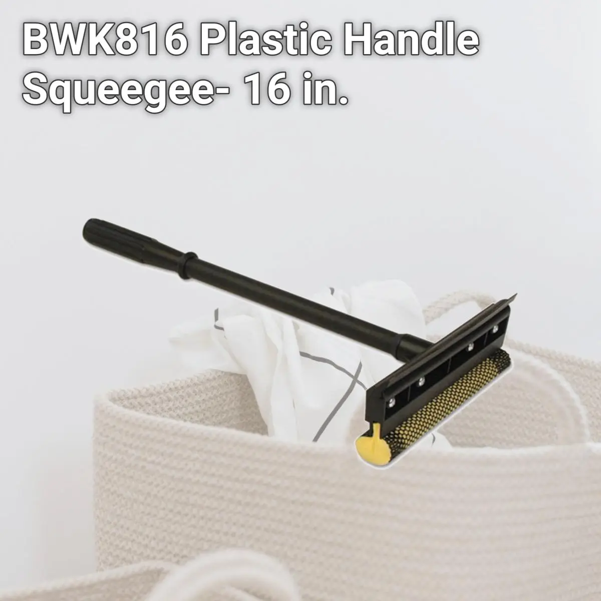 Features Ideal for windows.. 8 in. Synthetic sponge head covered in nylon mesh for durability and abrasive scrubbing. Global product type - Squeegees. Blade material - Rubber; synthetic sponge. Handle length - 16 in.. Blade color - Black. Material - plastic.