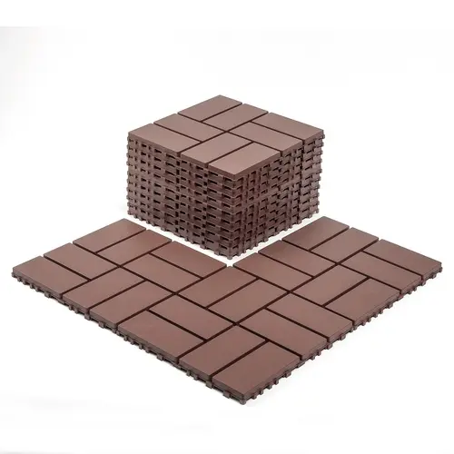 Plastic Interlocking Deck Tiles,44 Pack Patio Deck Tiles,12"x12" Square Waterproof Outdoor and Indoor All Weather Use,Brown