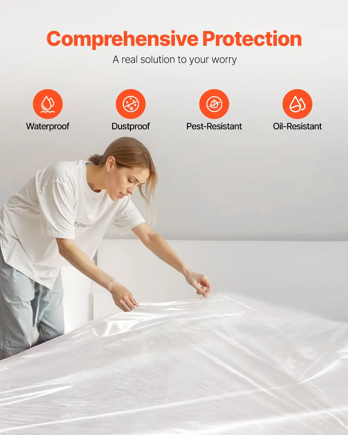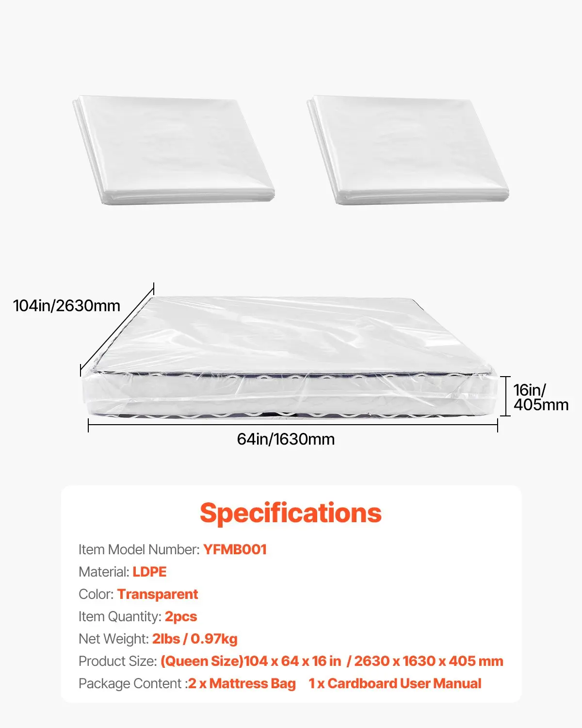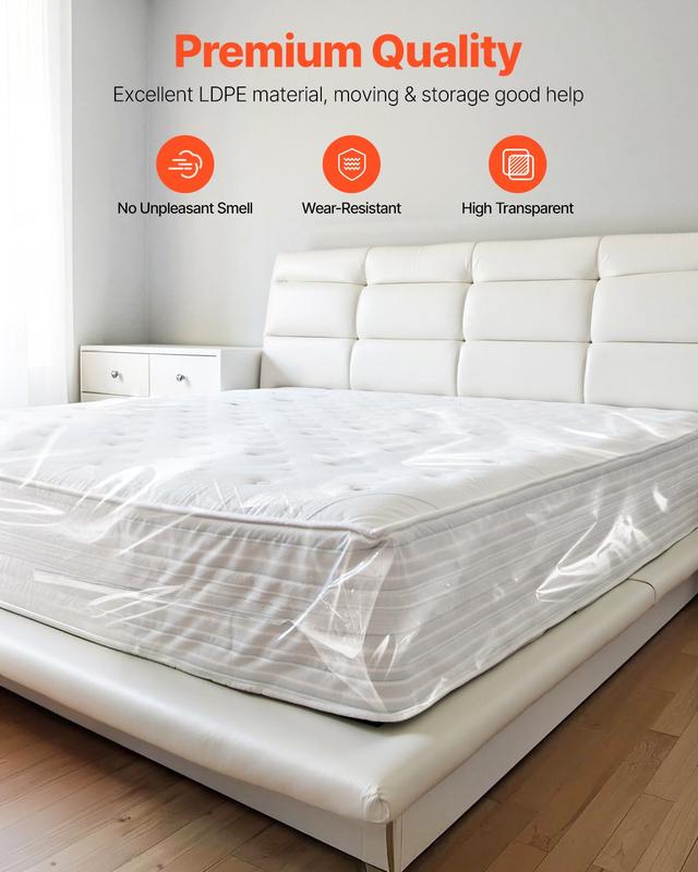 ·Premium 2 Mil Thick LDPE: Built for unmatched durability and tear-proof, this plastic mattress bag shields your mattress from scratches, wear, and dirt—keeping it pristine and extending its life.