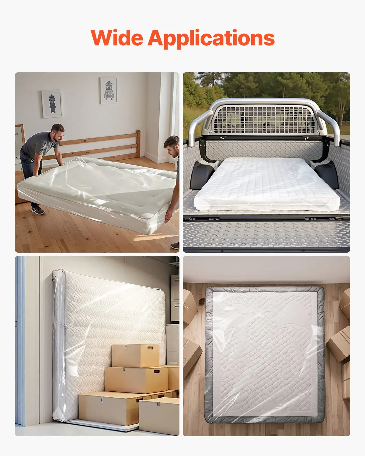 ·Enhanced Corner & Edge Protection: Reinforced corners of the plastic mattress cover provide robust protection against bumps and tears during transport, maintaining the mattress without damage.