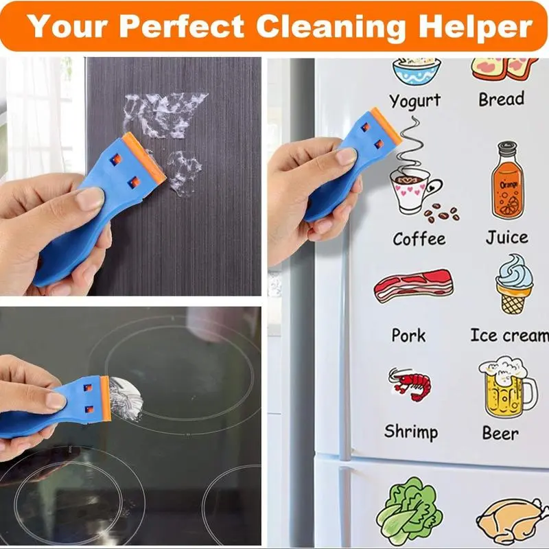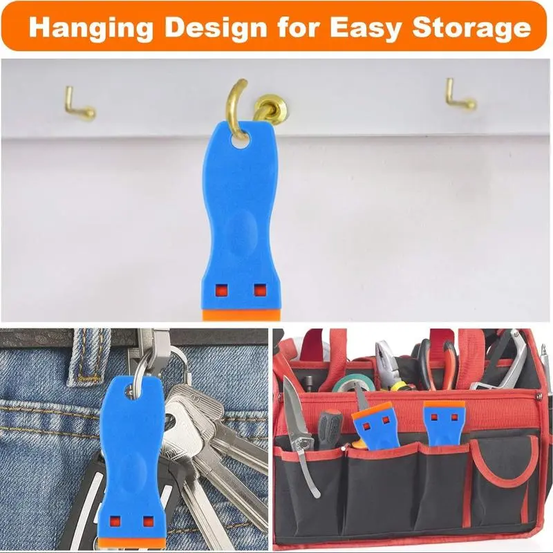[Portable & Flexible] - The rugged window scraper is lightweight and portable, convenient for home use and travel use. The package comes with 1 piece sticker scraper and 20 replacement plastic razor blades giving you more durability and flexibility to complete tasks [Ergonomic Handle] - Ergonomic curved handle design for greater comfort and control, lets you complete the work with a reduced amount of effort. The ergonomic razor blade holder gives you a more substantial edge to grasp [Practical & Multifunctional] - The multi-functional plastic scraper is widely used in removing glue, stickers, debris, adhesives, caulk, labels, decals from walls, counter tops, windshields, stoves, glass, appliances, metal, etc. Save your valuable time by keeping mini razor scraper tool kit in the living room, bathrooms, kitchen, car, workshop, toolbox, office, Recreational Vehicle, boat, motorcycle [Sharp Blades & Scratch Proof] - The plastic scraper tool is made of high quality plastic with solid construction for providing strength and stiffness, which is strong, flexible, not easy to deform and break. The plastic razor blade is sharp enough to remove stubborn residue without scratching or gouging. The plastic design protect you from hurting when using it